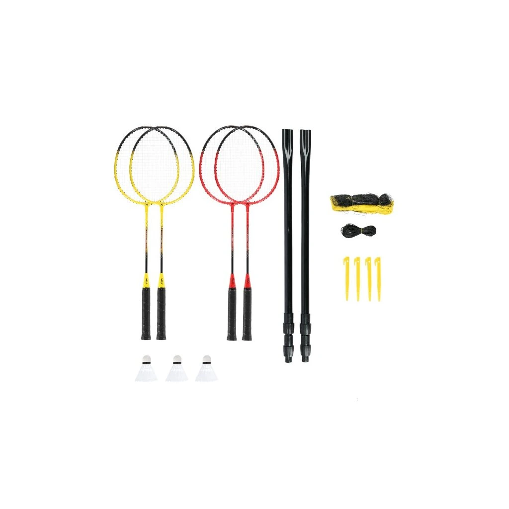 Badmintonová sada NILS NRZ264 obsahuje vše potřebné pro téměř okamžité zahájení hry. V praktickém obalu s popruhem přes rameno naleznete 4 rakety, 2 teleskopické sloupky, síť, napínací šňůry s kolíky a 3 letky.
