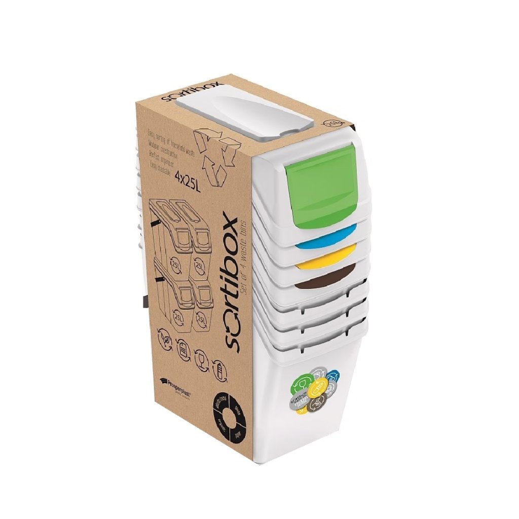 Snadná stohovatelnost snadné třídění domácího odpadu objem 4x25 litrů.