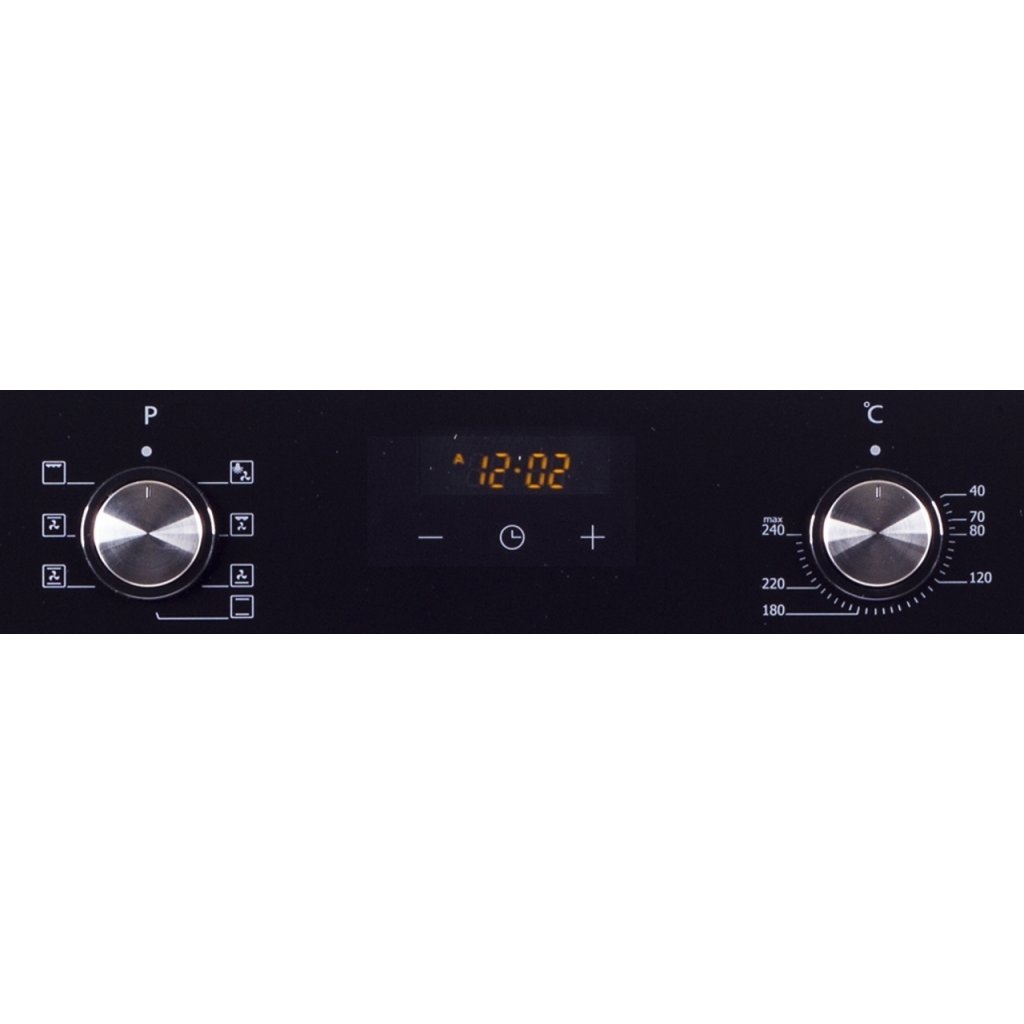7 programů – horní topné těleso, spodní topné těleso, vysoký gril, nízký gril, horkovzduch, udržení tepla (větrák), ochlazení trouby