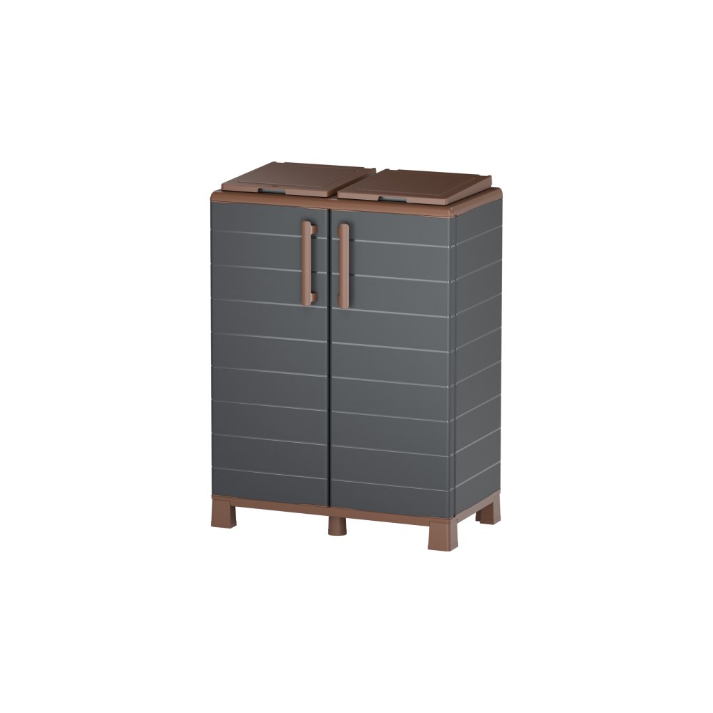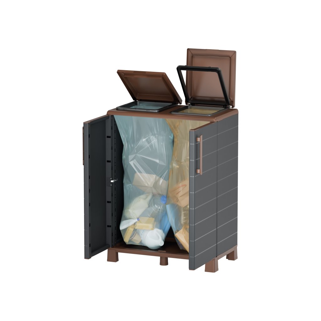 PORTOFINO ECO P70-ECO kombinuje moderní design s praktickou funkcí třídění odpadu. Skříň je vyrobena z recyklovaného polypropylenu a je vhodná pro vnitřní i kryté venkovní prostory.