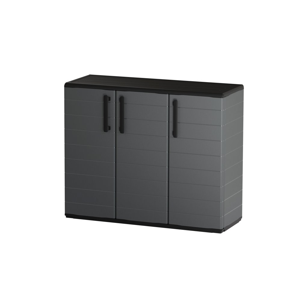 PLAIN P101-B je nízká plastová skříň se širokým vnitřním prostorem, vhodná jako úložný prvek pod okno, na balkon nebo do garáže. Díky kompaktní výšce umožňuje využití horní plochy jako odkládacího prostoru.