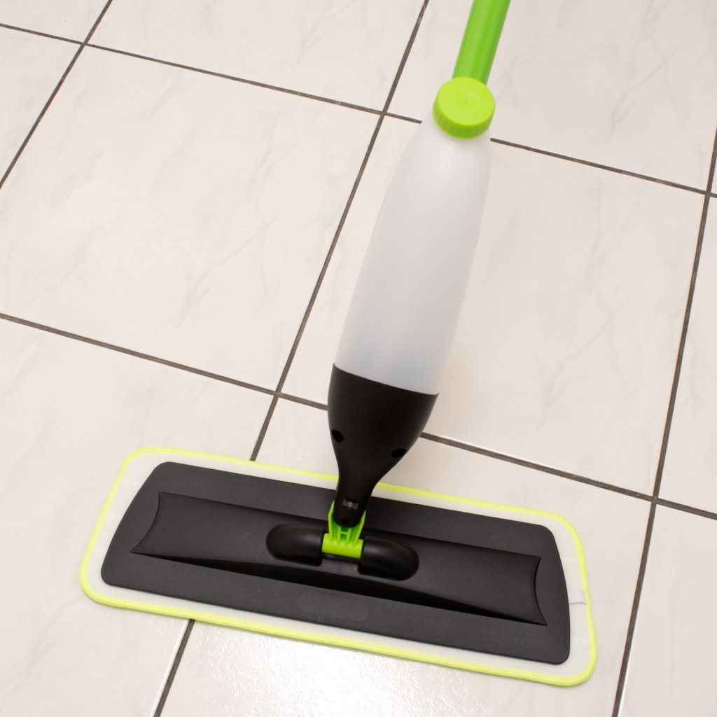 Plochý mop se sprejem AZUR zajišťuje rychlý úklid bez šmouh na dlažbě, laminátu i dřevě.