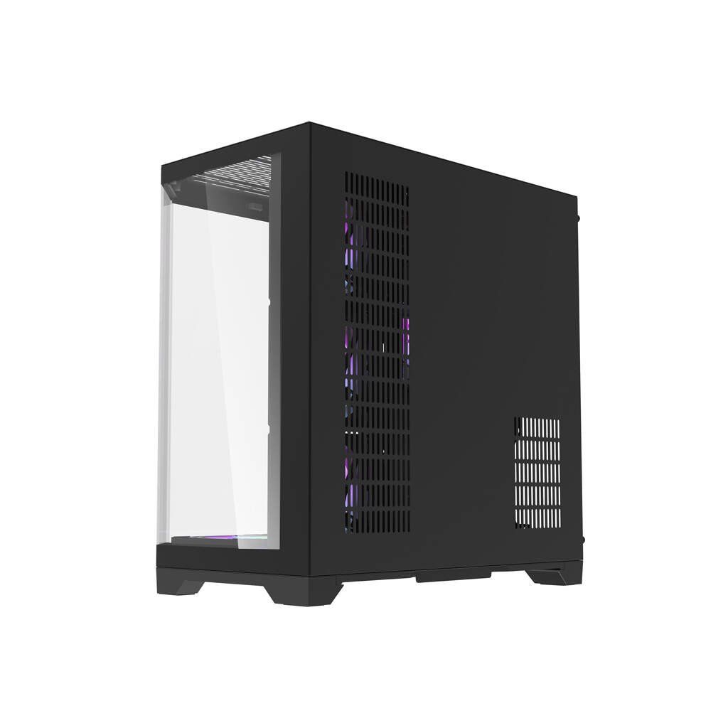 Skříň se vyznačuje třemi průhlednými panely z tvrzeného skla, takže poskytuje široký panoramatický výhled na vnitřek počítače. Takové řešení umožňuje originálním způsobem zvýraznit jednotlivé komponenty! Použijte například komponenty s podsvícením RGB a dodejte svému zařízení jedinečný herní charakter.