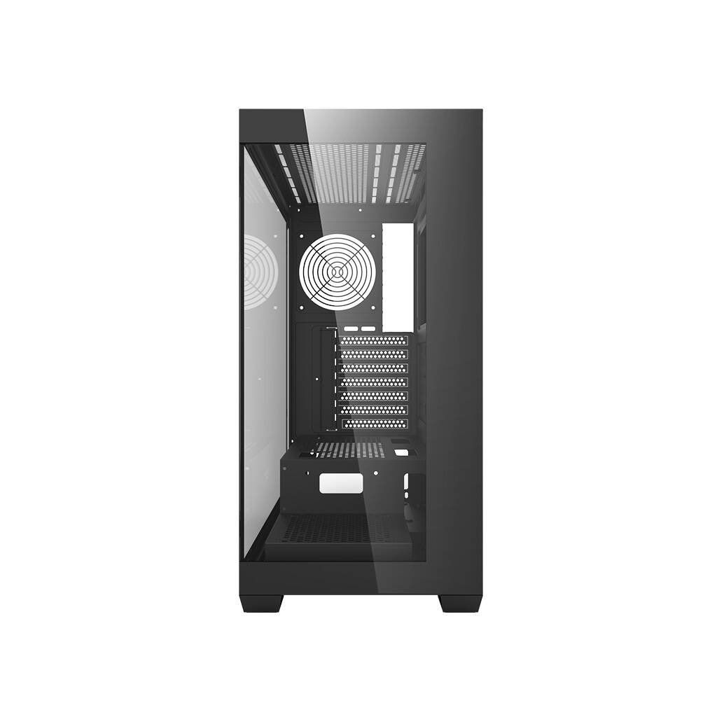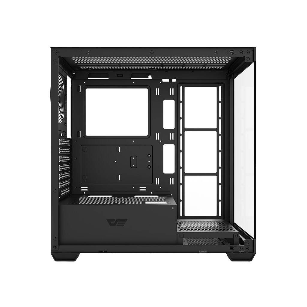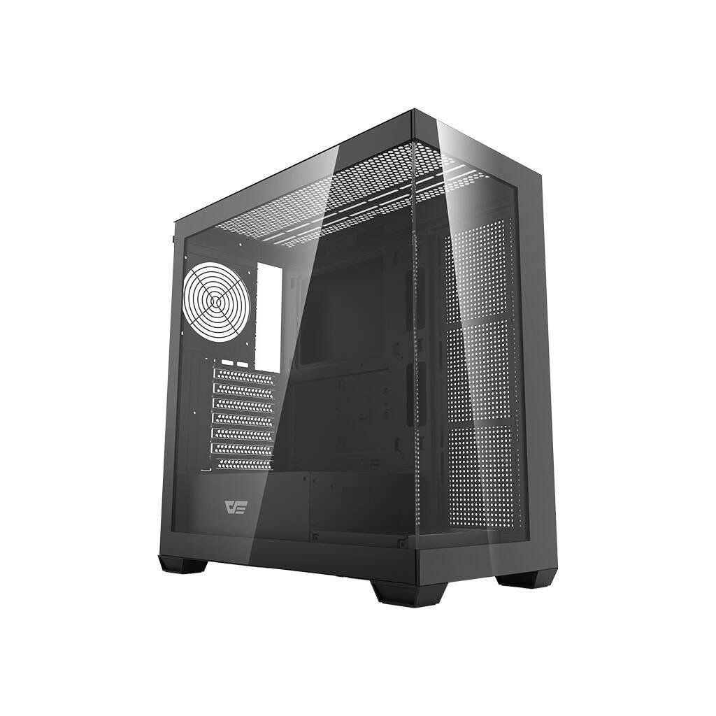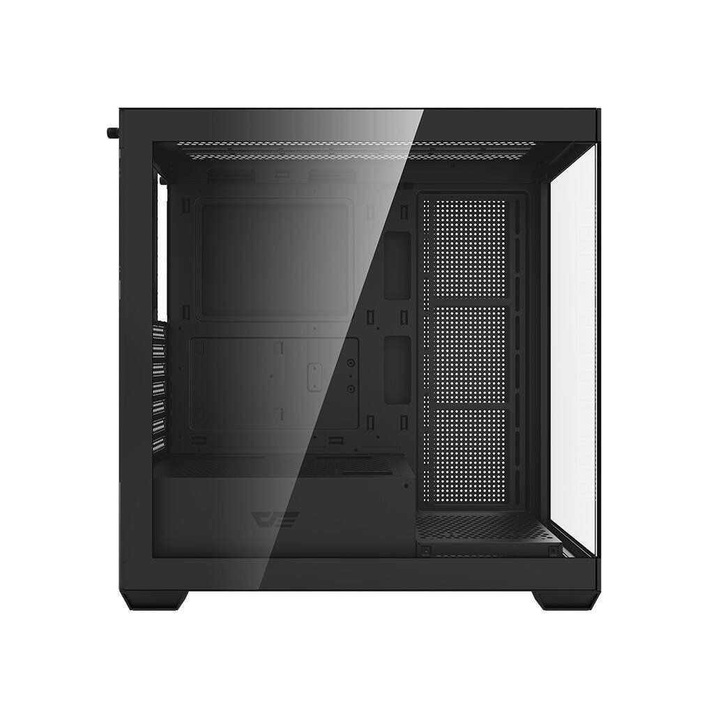 Darkflash DS900 je moderní řešení pro náročné uživatele, kteří si cení estetiky i funkčnosti. Výrazné černé provedení s panoramatickým designem bez A-sloupku, vybavené dvojitými plně průhlednými skleněnými stěnami, nejenže působí efektně, ale také poskytuje vynikající přehled o komponentách. Skříň je navržena tak, aby poskytovala optimální chlazení, výkon a všestrannost a zároveň nabízela snadné úpravy a rozšíření počítačových systémů. Souprava neobsahuje ventilátory.