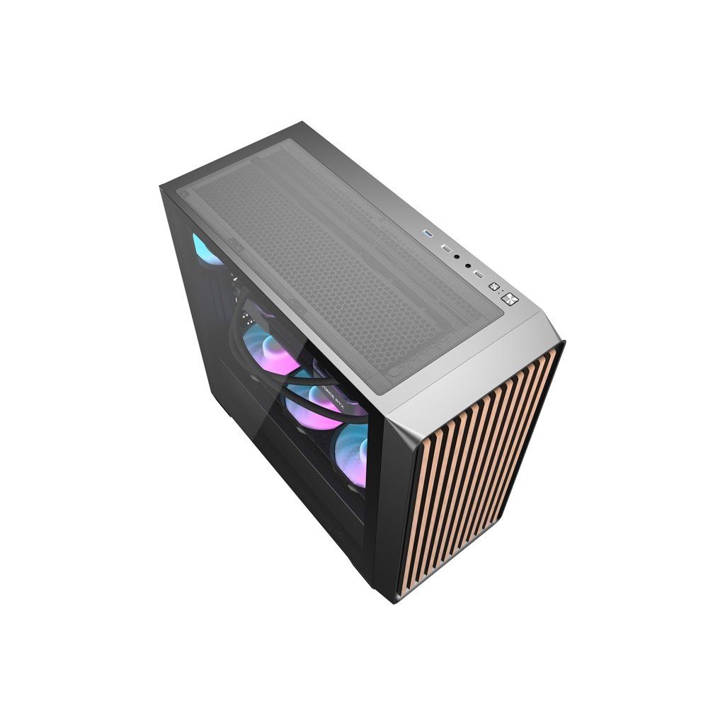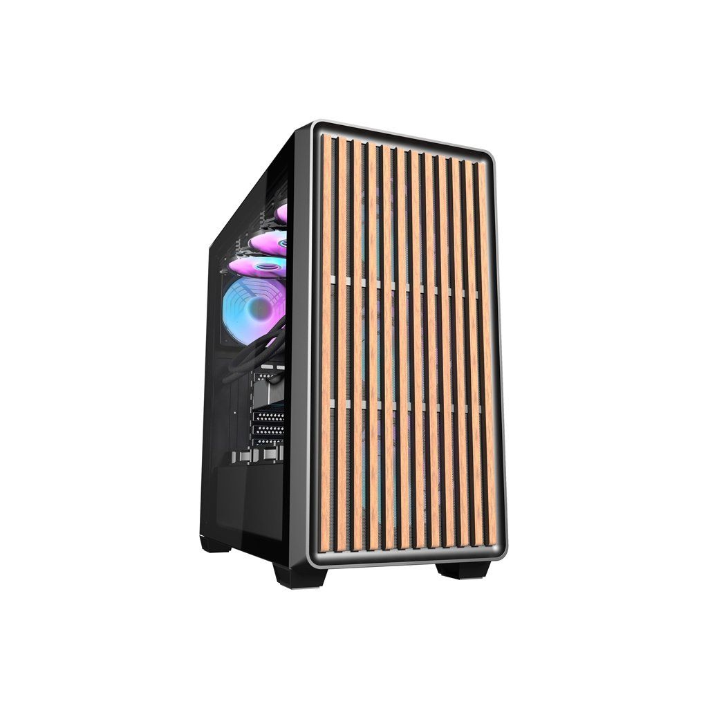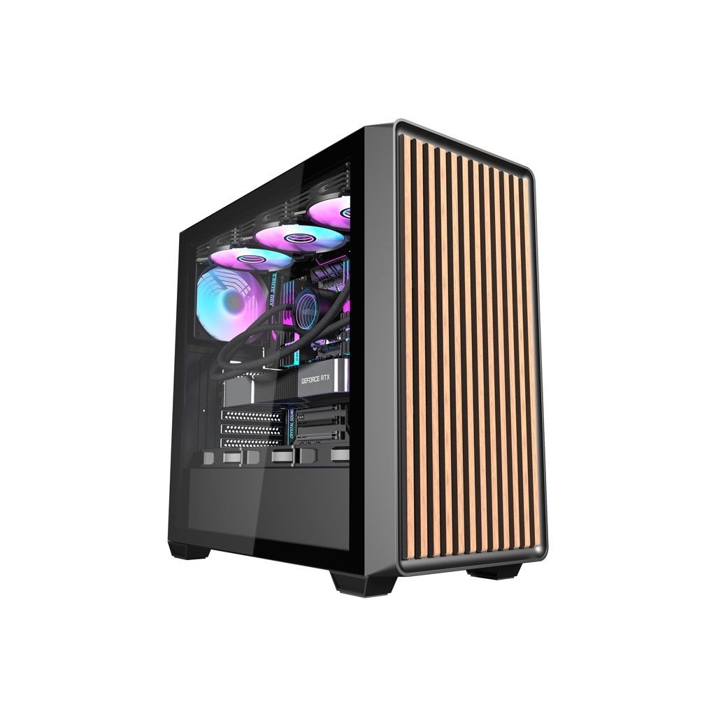 Darkflash DS900WD je moderní řešení pro náročné uživatele, kteří ocení estetiku i funkčnost. Výrazný design s panoramatickou konstrukcí bez A-sloupku, vybavený jednou průhlednou skleněnou stěnou a dřevěným čelem, nejenže působivě vypadá, ale také poskytuje vynikající viditelnost komponent. Skříň je navržena tak, aby poskytovala optimální chlazení, výkon a všestrannost a zároveň nabízela snadné úpravy a rozšíření počítačových systémů. Součástí sady jsou 4 ventilátory.
