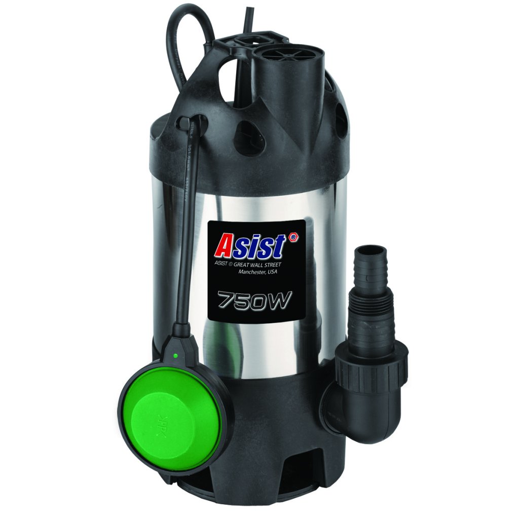 Ponorné kalové čerpadlo ASIST s příkonem 750 W, můžete použit k čerpání kapalin a kalů například z bazénů, jímek, či jiných míst s vodou ve které jsou obsažený pevné částice do 25 mm. Jedná se o čerpadlo s hloubkou ponoru 7 metrů a dopravní výškou až 8 metrů. Uspokojí všechny uživatele. Plovákový spínač je možné nastavit na libovolnou hladinu v daném rozmezí, výška hladiny se určuje prodloužením nebo zkrácením volné části kabelu s plovákovým spínačem.
