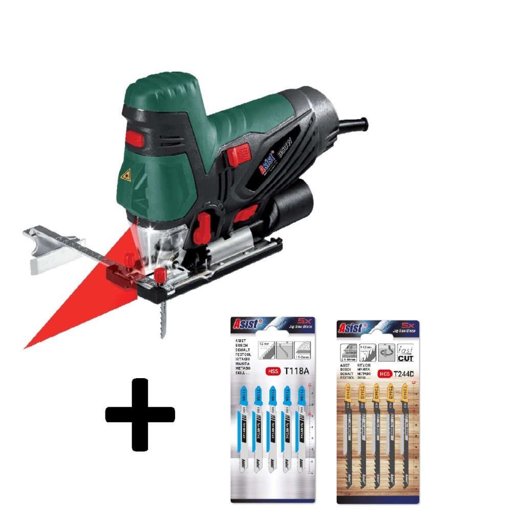 Přímočará pila 850W s SDS upínáním a naklápěním a laserem a LED světlem + ZDARMA 10 pilových listů ASIST