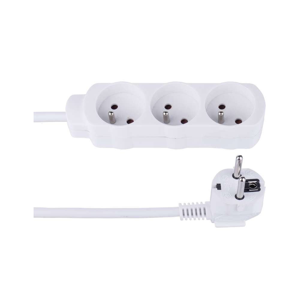 délka: 1,2 m, počet zásuvek: 3× 2P + PE, napětí/proud: 250 V~/10 A max., max. zátěž: 2 300 W, typ izolace: PVC, barva: bílá, vodič: H05VV-F3G 1 mm2, dětské clonky: ano, materiál zásuvky a vidlice: plast, prodejní obal: 1 ks, fólie