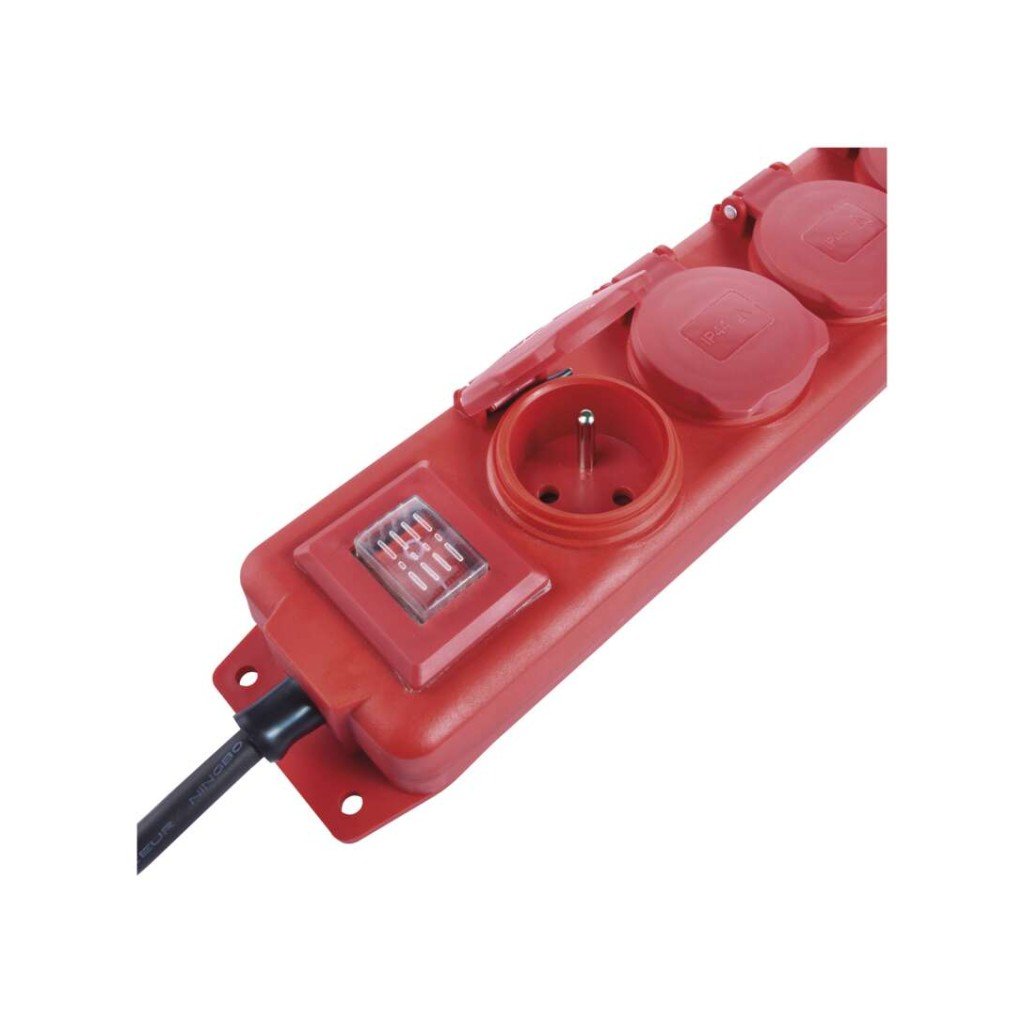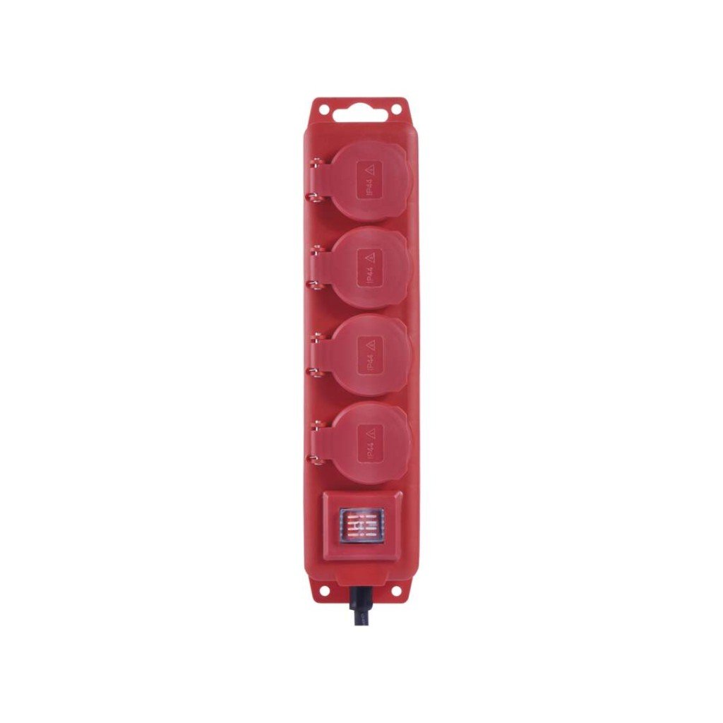 Prodlužovací kabel EMOS 10 m, 4 zásuvky, s vypínačem, černo-červený, guma-neopren, 1,5 mm2 – praktický výrobek pro každodenní použití.