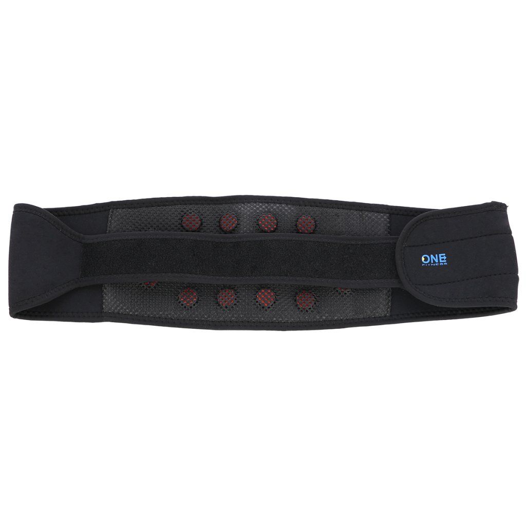 Magnetický, stabilizační pás ONE Fitness PS168 je určen pro snížení bolestivosti zad. Jeho účinek je stabilizace zad a ulehčení bederní páteři. Bederní část pásu je opatřena 16-ti magnety, ty vytváří magnetické pole, které má pozitivní účinek na bolest, nebo otok. Použití pásu je vhodné po úrazech a při fyzické činnosti. Zapínání pásu se provádí pomoci dlouhého, suchého zipu, velikost modelu PS168 je tedy universální a vhodná pro jakoukoliv postavu.