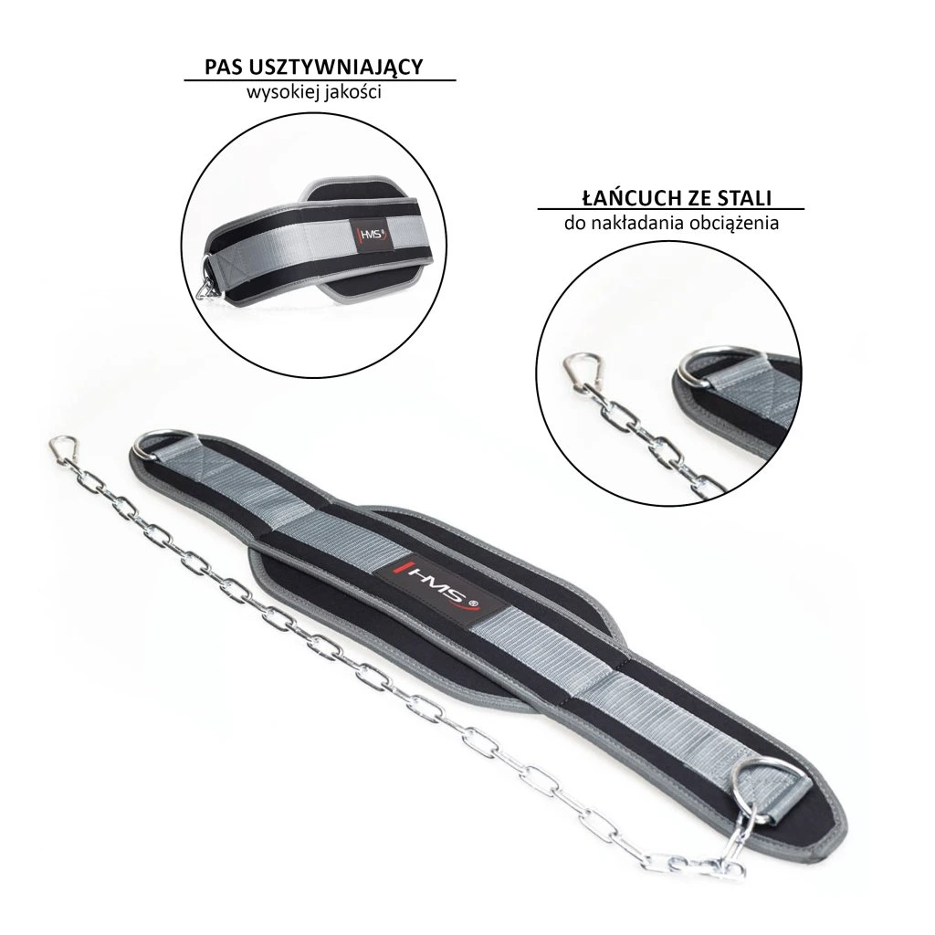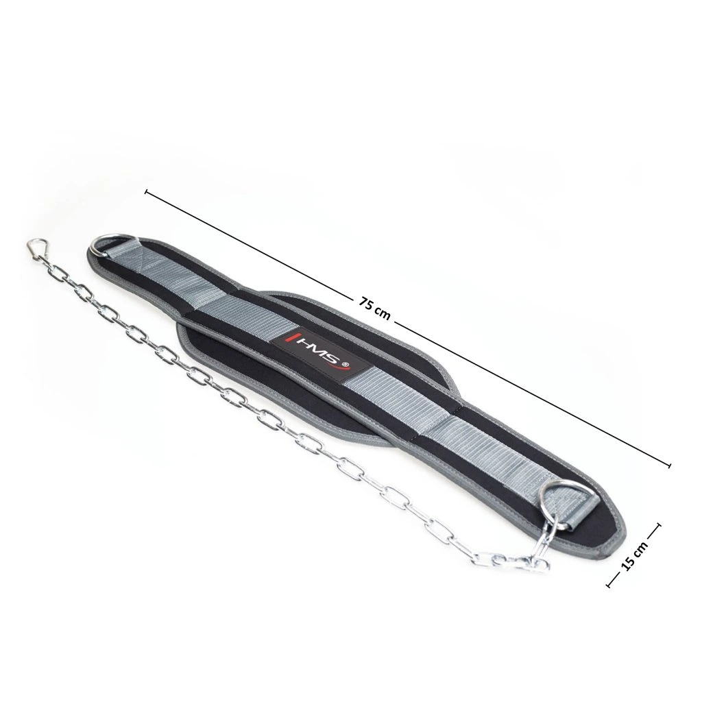 Zátěžový pás HMS slouží k zvýšení obtížnosti cviků ve visu, jako jsou shyby a dipy. Maximální navýšení váhy, které pás snese je 150 kg.