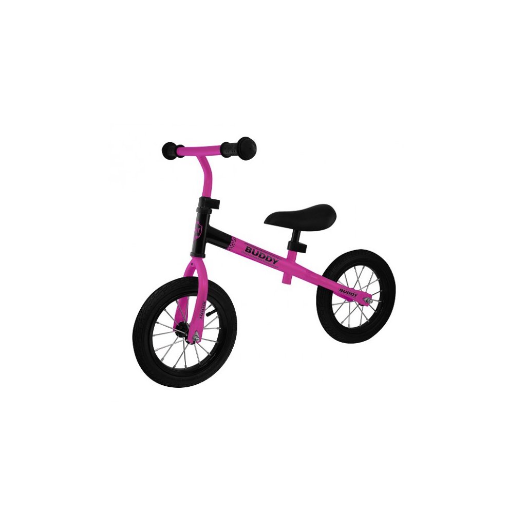 **Zajímavé růžové odrážedlo ** má pevný odlehčený ocelový rám.**12-ti palcová kola ** a**plastové ráfky ** stačí k pohodlné jízdě malých závodníků.**Výškově nastavitelná řídítka ** a sedlo přispívají ke komfortu.