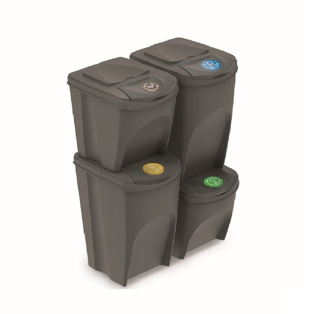 Sada 4 odpadkových košů SORTIBOX šedý kámen, objem 2x25l a 2x35l PROSPERPLAST