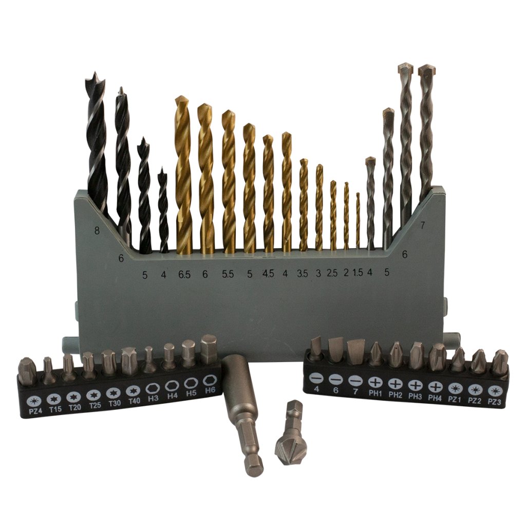 41 dílná sada vrtáků a bitů v praktickém kufru. Sada obsahuje vrtáky do železa, dřeva, betonu a nejpoužívanější bity pro šroubování v provedení Chrom Vanadium