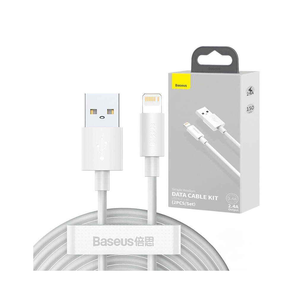 Sada datových kabelů Baseus Simple Wisdom s USB na Lightning (2ks/Set)1.5m - bílý