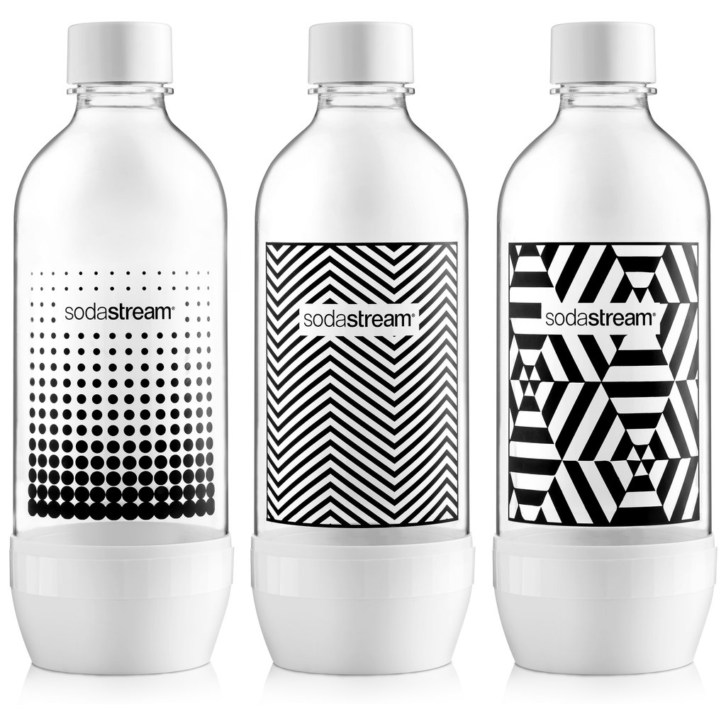3 plastové láhve, 1 litr, bez BPA, použitelná s modely: Jet, Play, Source, Genesis, Fizz, Dynamo, Pure, Spirit, Revolution, Power