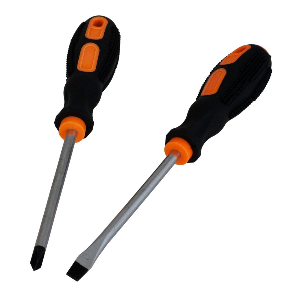 Rovný a křížový šroubovák s magnetickým koncem a protiskluzvou TPR rukojetí.