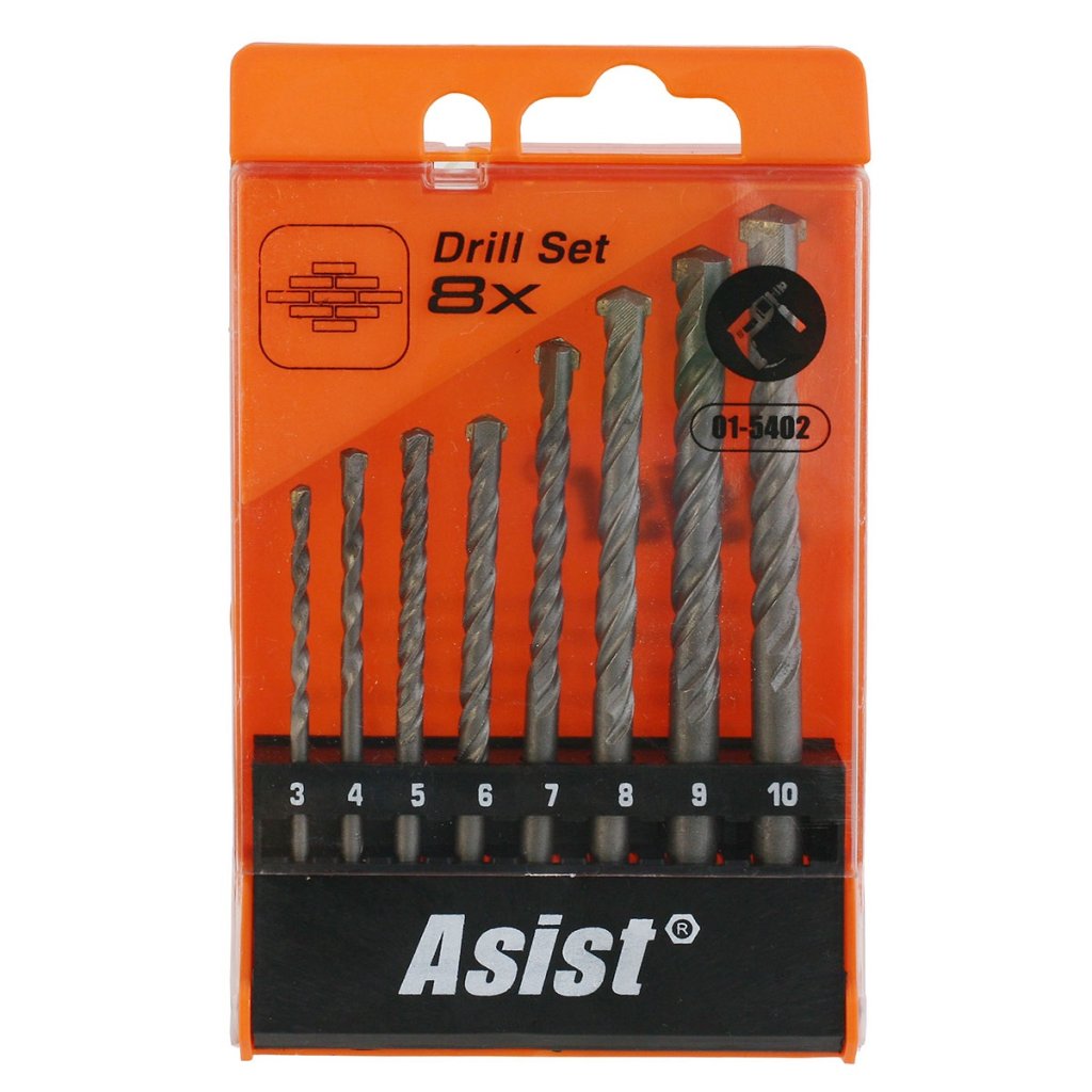 Sada vrtáků do betonu a zdiva, 8 ks ASIST 01-5402 je univerzální volba pro přesné a rychlé vrtání do betonu, cihel, tvárnic i přírodního kamene. Promyšlené rozložení průměrů 3–10 mm pokryje většinu montážních prací v domácnosti i na stavbě – od děr pro hmoždinky až po kotvení polic, držáků a rámů.