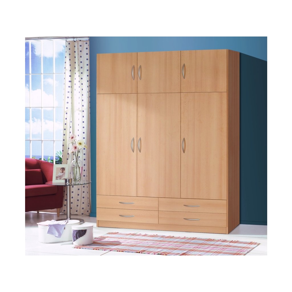 výška 1940mm šířka 1350mm hloubka 550mm materiál: dřevotříska + lamino barva: buk