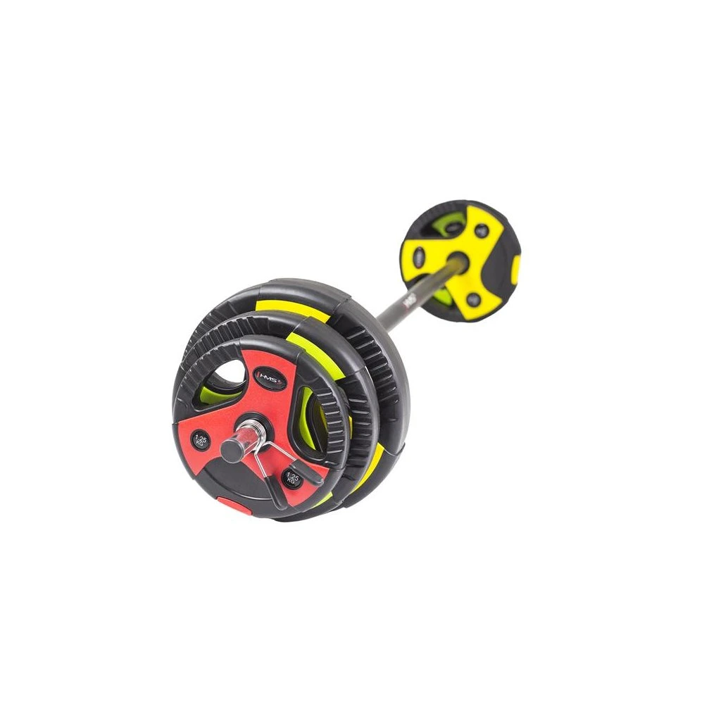 Obouruční nakládací činka SBP15 HMS, kterou ocení nejen muži ale také ženy. Činka je totiž vhodná pro cvičení typu "BODY Pump či Pump FX". Tento model má možnost rozložení osy na 3 části, výhoda tohoto provedení je jeho přenos. Navíc je osa vyrobena z kvalitní oceli a pokryta pěnou pro příjemnější úchop. Na stranách je činka vybavena bezpečnostními uzávěry.
