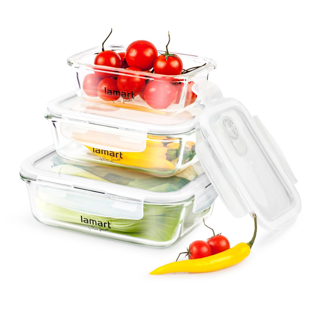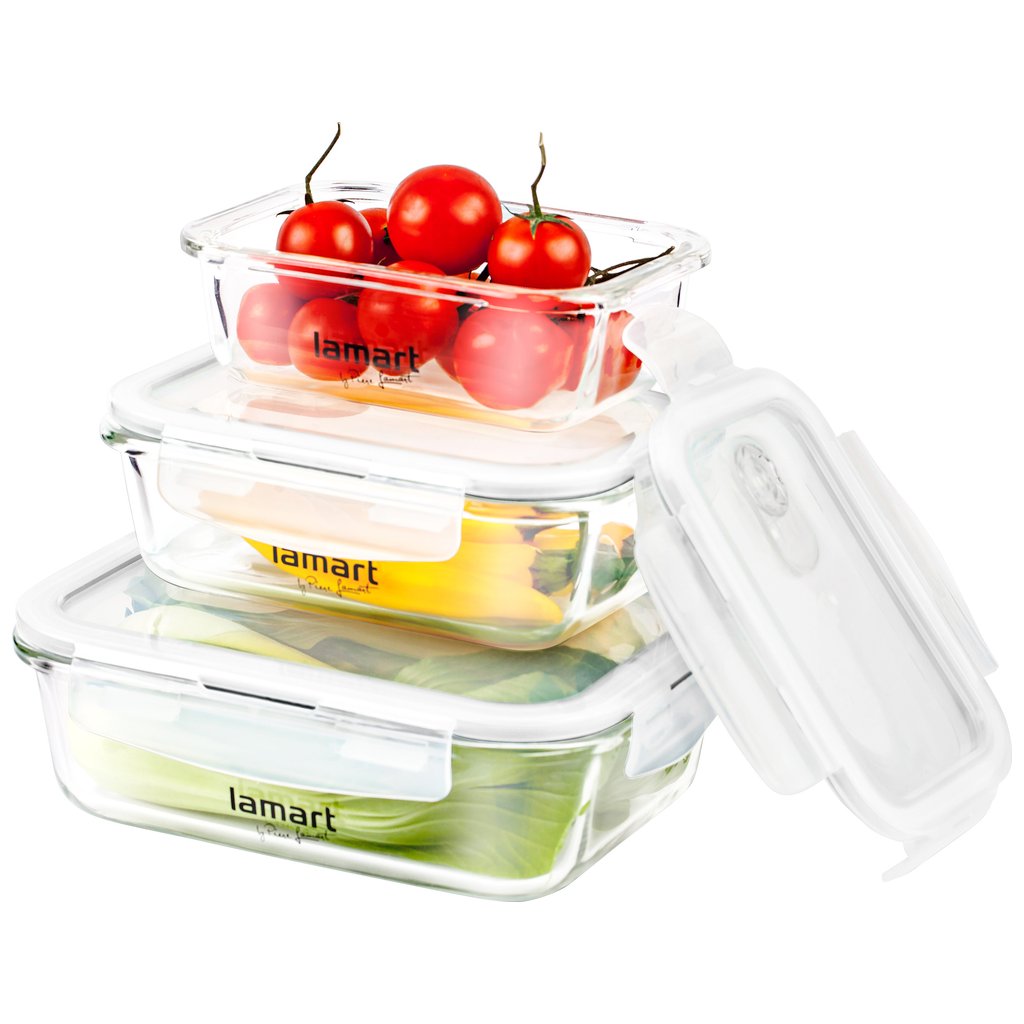 Uzavíratelné dózy LAMART AIR LT6011 představují praktického pomocníka při uchovávání a přenášení potravin. Nadchnou vás vysoce kvalitním a důmyslným zpracovánímdíky kterému bude skladování potravin zase o něco jednoduší. Dózy jsou vyrobeny z velmi odolného skla a vydrží teploty od20°C až do 110°Cjsou tedy vhodná do ledničkymrazničkymikrovlnné trouby i do myčky. Díky jejich vzduchotěsným a vodotěsným víčkům ze silikonu z nich nevytečou ani tekutá jídlatakže můžete bez starostí přenášet například omáčky nebo polévky. Víčka jsou vyrobena z kvalitního plastu a navíc opatřena ventilem pro odvětrávání a odvlhčování potravin. V sadě najdete tři dózy různých rozměrů.Základní vlastnosti obdélníkových dóz LAMARTKvalitní dózy s víčkem Silikonové těsnění víčkaUzavíratelný odvětrávací ventil Vhodné i do mrazničky a mikrovlnné troubyLze mýt v myčceMateriál: skloplastSoučást baleníDóza o objemu 370 ml (15 x 11 x 6 2 cm) Dóza o objemu 640 ml (18 x 13 x 6 8 cm) Dóza o objemu 1040 ml (20 5 x 15 5 x 7 5 cm)
