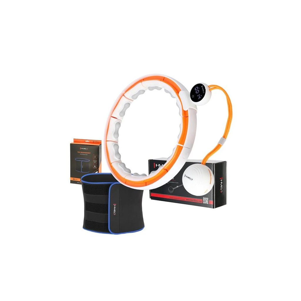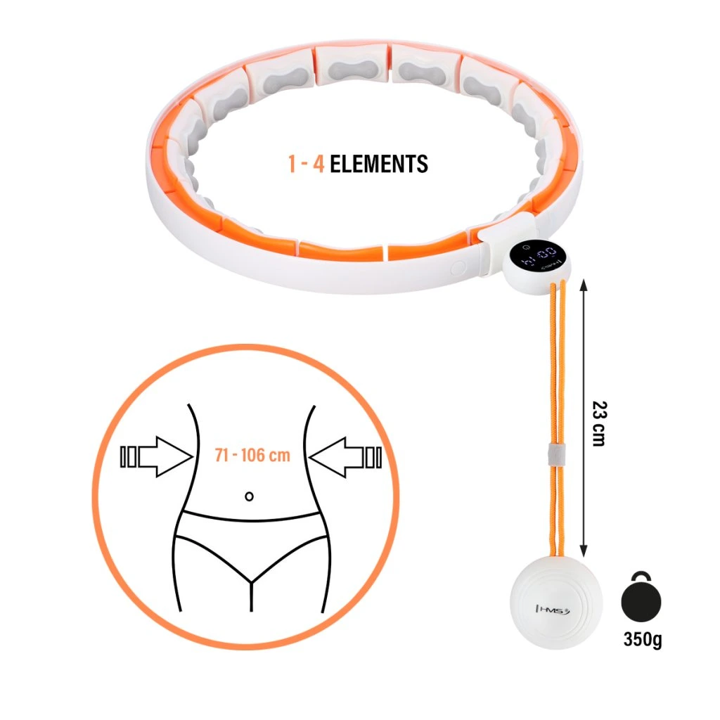 SET HHM21 + BR1313 BÍLÁ/ORANŽOVÁ HULA HOOP OBRUČ SE ZÁVAŽÍM, MAGNETY A POČÍTADLEM HMS