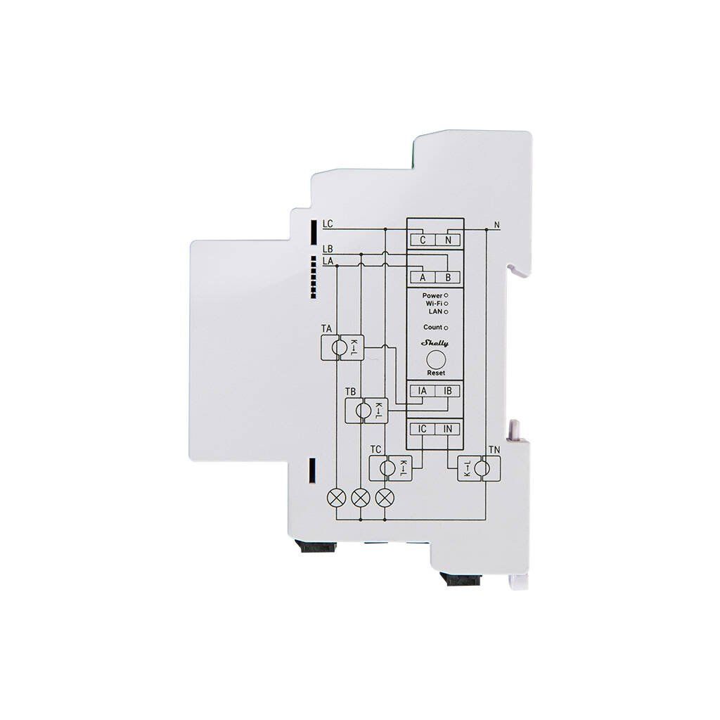 Shelly Pro 3EM 120A je profesionální třífázový elektroměr, který lze instalovat na lištu DIN. Zařízení hlásí kumulovanou energii s přesností 1 % a také napětí, proud a výkon v reálném čase pro každou fázi. Ukládá data za posledních 60 dní s rozlišením jedné minuty pro každou fázi, což umožňuje přesnou analýzu. Může pracovat samostatně v místní síti LAN a/nebo Wi-Fi nebo může být ovládáno prostřednictvím cloudové služby domácí automatizace pomocí protokolů MQTT, HTTP a WebSocket. Kromě toho nabízí pokročilé možnosti skriptování a rozšířené možnosti monitorování.