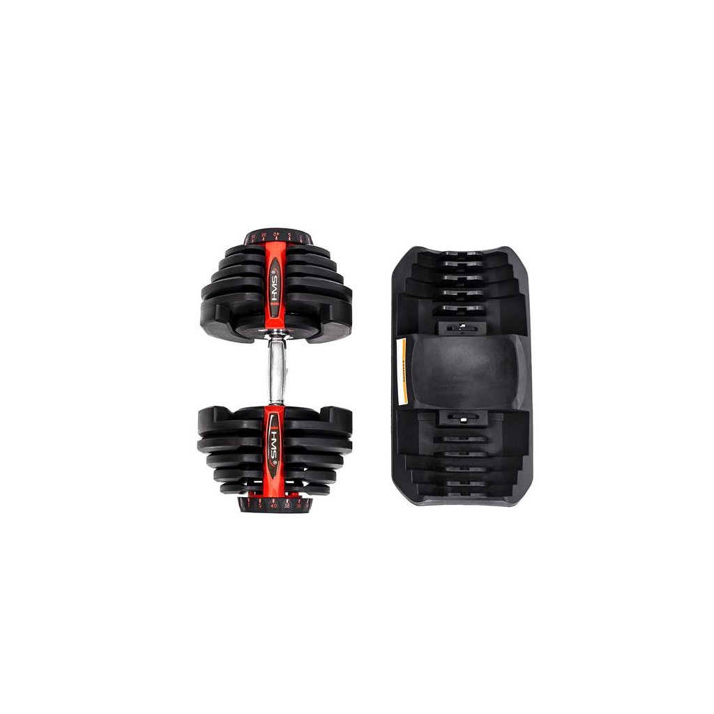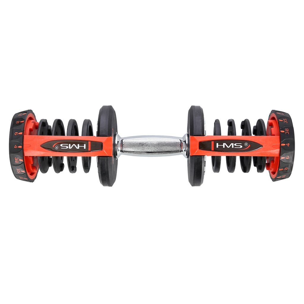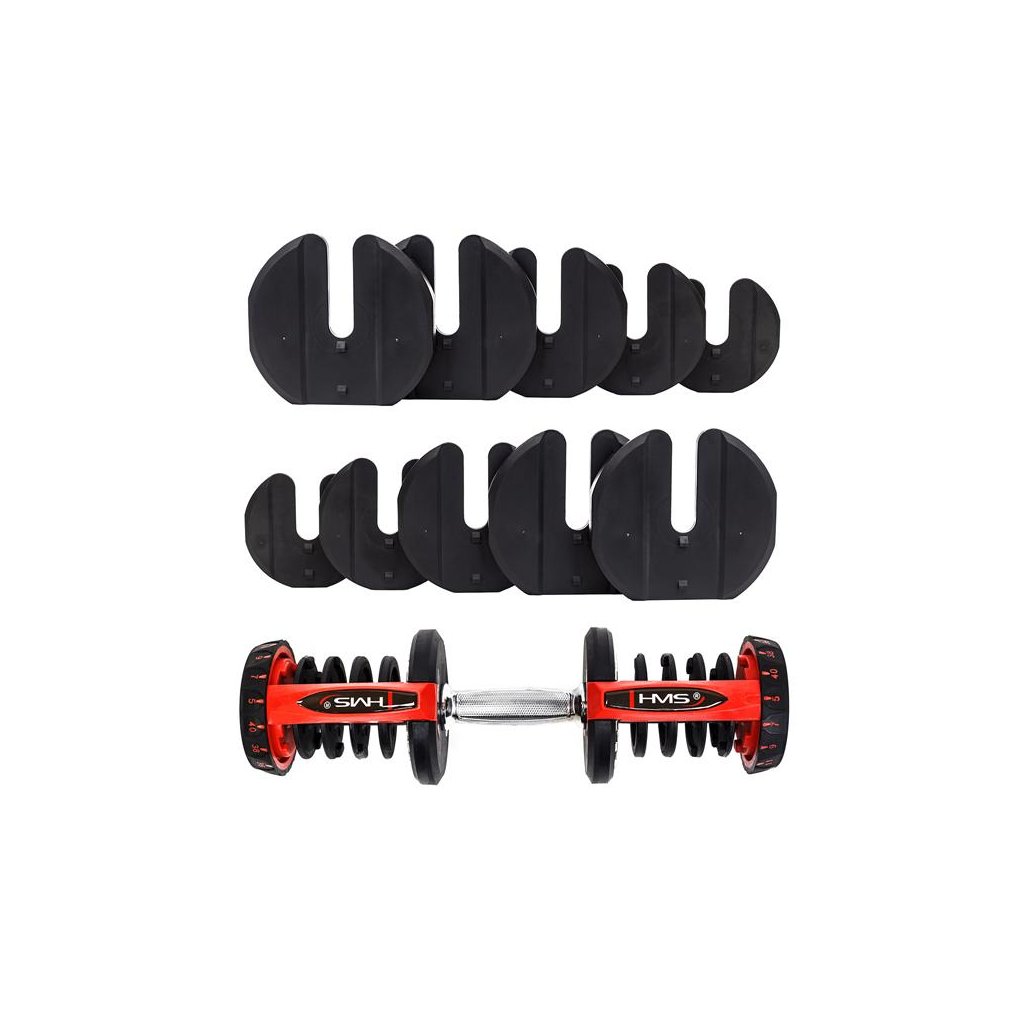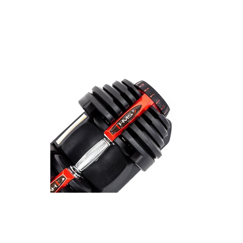 Produkt je vyroben z materiálů nejvyšší kvality. Velkou výhodou SR80 HMS je ergonomicky tvarovaná rukojeť činky, potažená protiskluzovým materiálem. Regulovatelné jednoruční činky značky HMS představují inovativní řešení pro milovníky silových sportů – 10 kotoučů umožňuje libovolné nastavení zátěže podle potřeb uživatele.