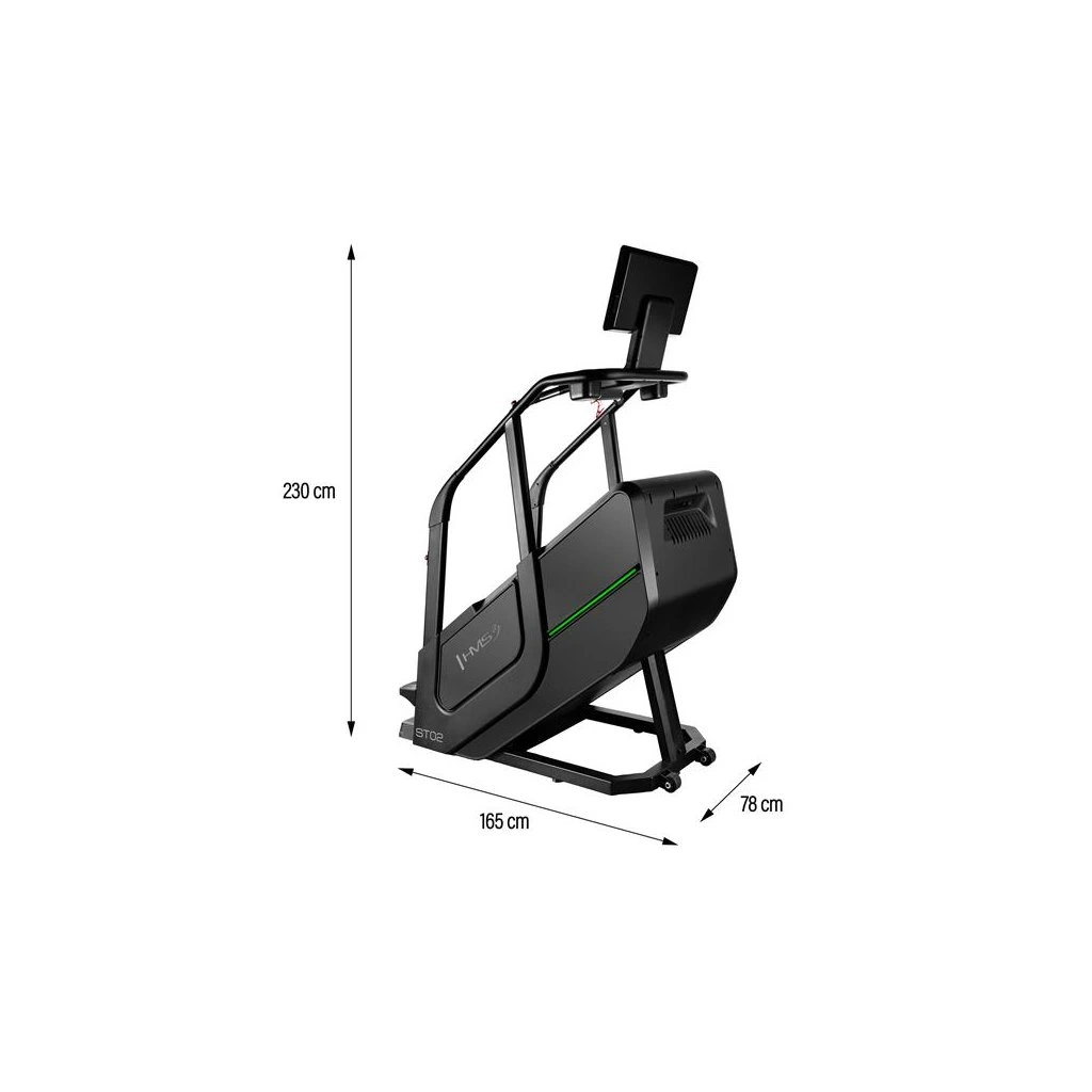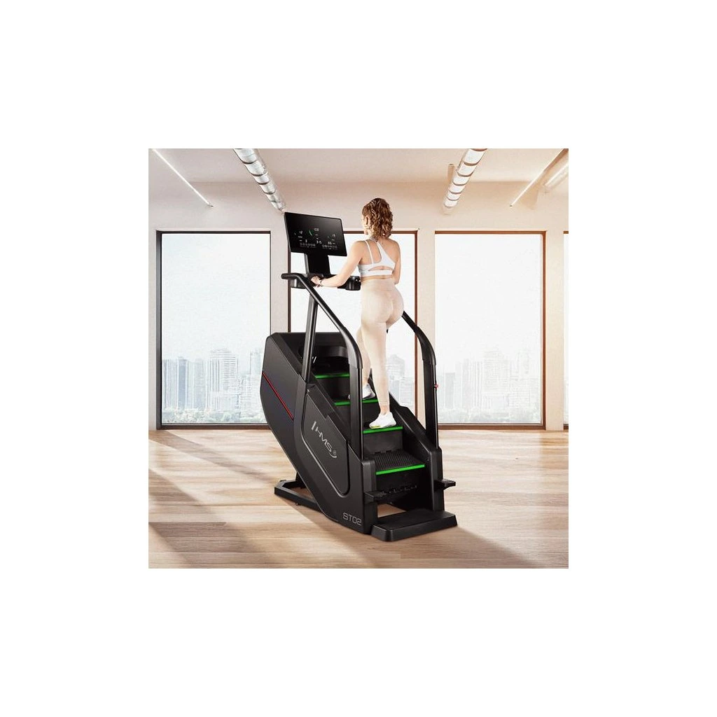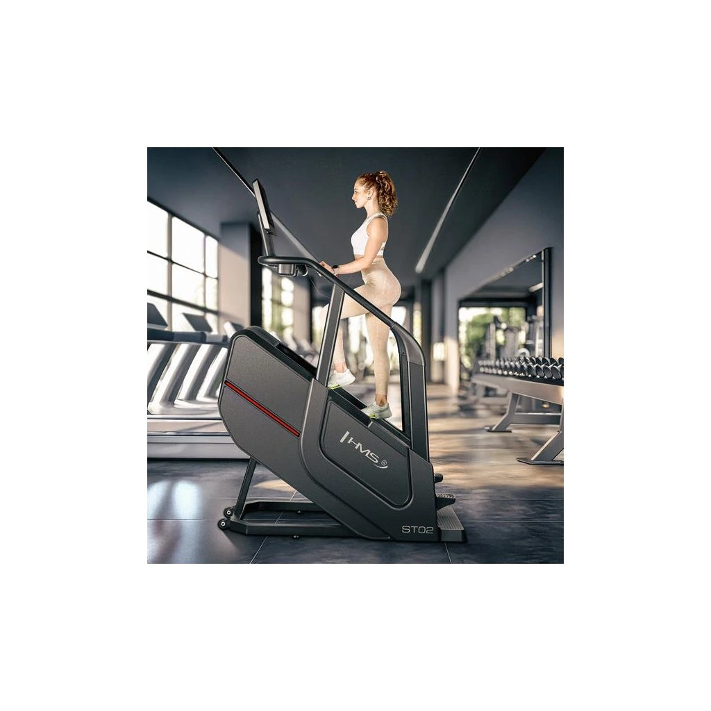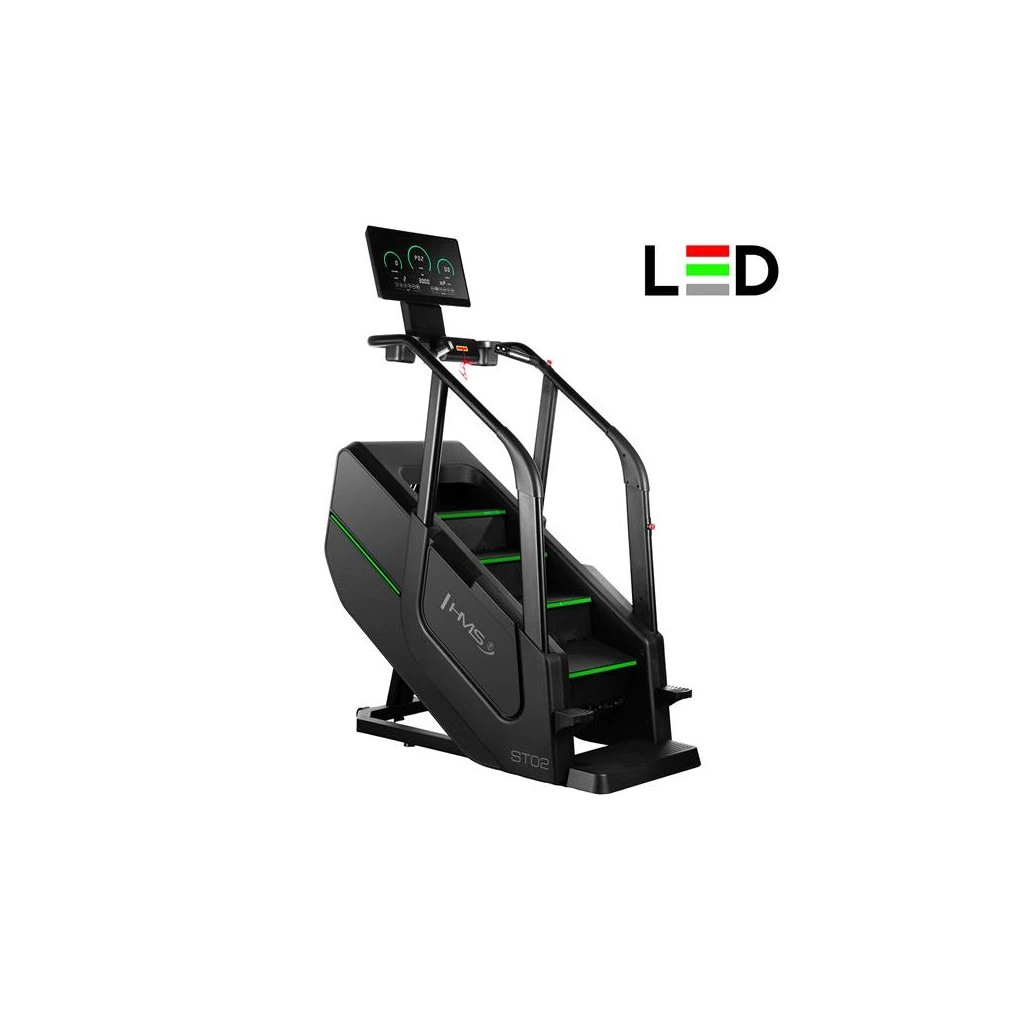 Schody ST02 je vybaven funkcemi měření rychlosti, počtu kroků, vystoupané výšky, času, spálených kalorií, tepové frekvence a tělesného tuku, které vám umožní sledovat vaše pokroky a přizpůsobit trénink vašim individuálním cílům. Bezdrátová nabíječka umožňuje pohodlné nabíjení mobilních zařízení během cvičení. Intuitivní ovládací panel s tlačítky pro regulaci rychlosti a tlačítky start/stop na madlech zajišťuje jednoduché a rychlé ovládání.