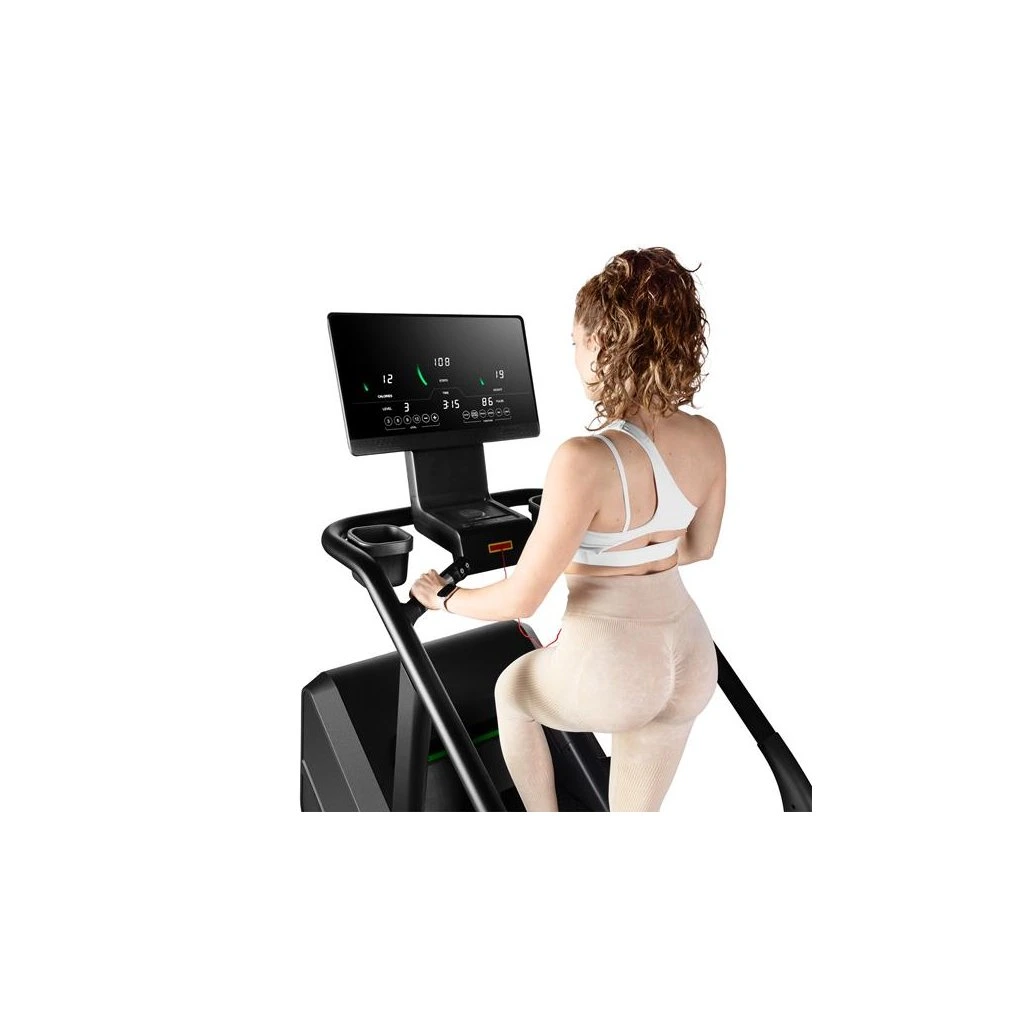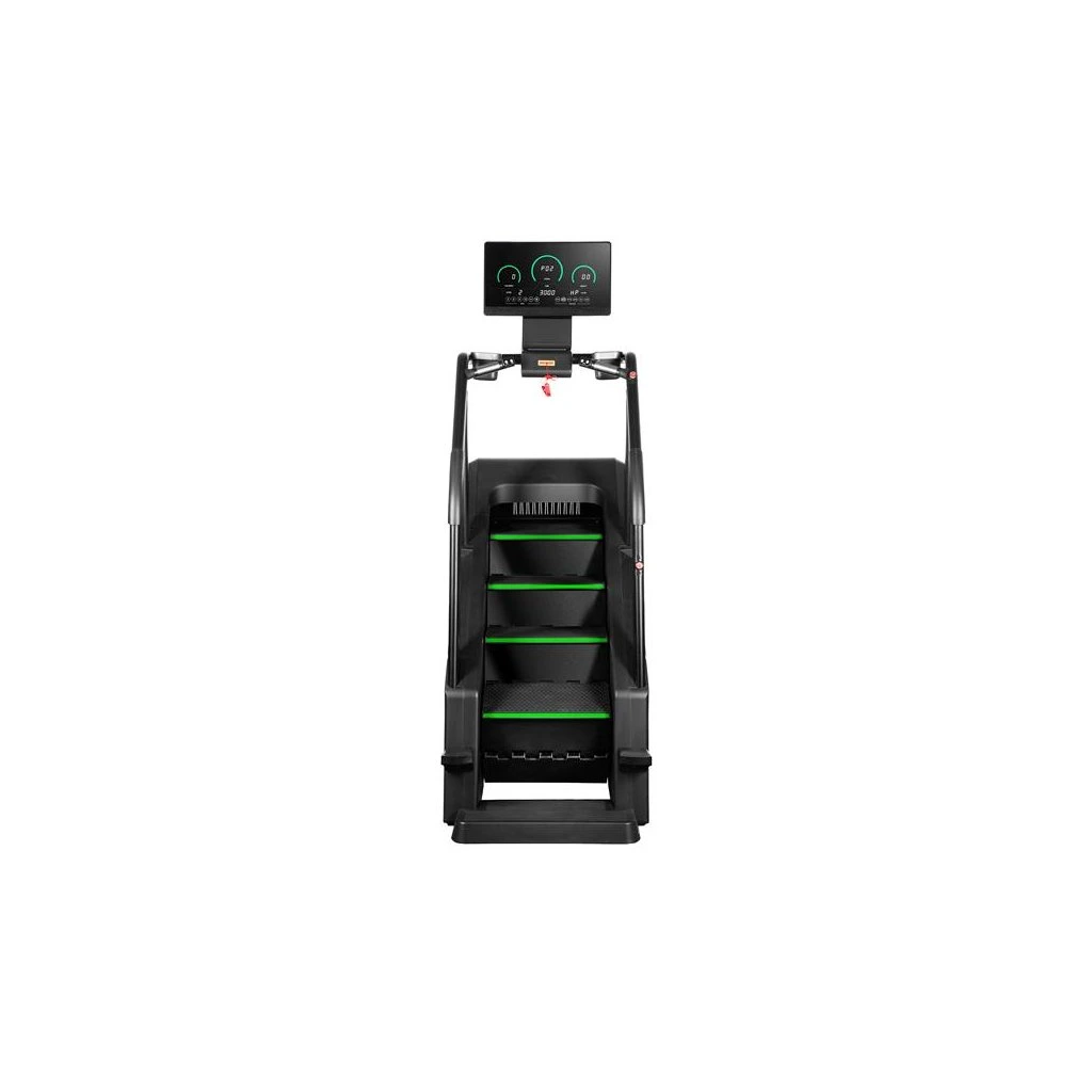 Stroj má robustní konstrukci, která zaručuje stabilitu při intenzivním tréninku. Protiskluzové schody pod úhlem 35 stupňů zajišťují pohodlí a bezpečnost při používání. Samoblokovací systém schody automaticky zastaví, pokud je zatížení menší než 30 kg.