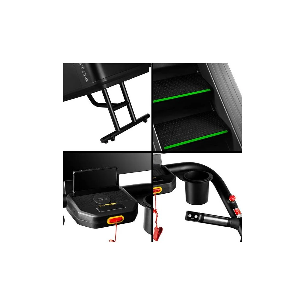 Díky samosvornému systému a automatickému zastavení při absenci zátěže nebo při zátěži nižší než 30 kg zajišťuje ST04 bezpečné použití za všech podmínek. Schody jsou určeny pro uživatele s maximální hmotností 135 kg, takže jsou dostupné širokému spektru cvičenců.