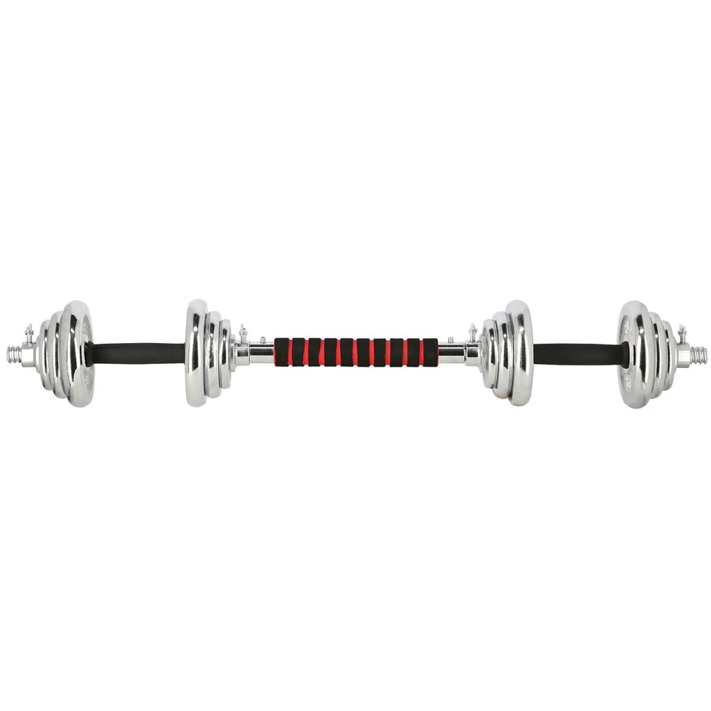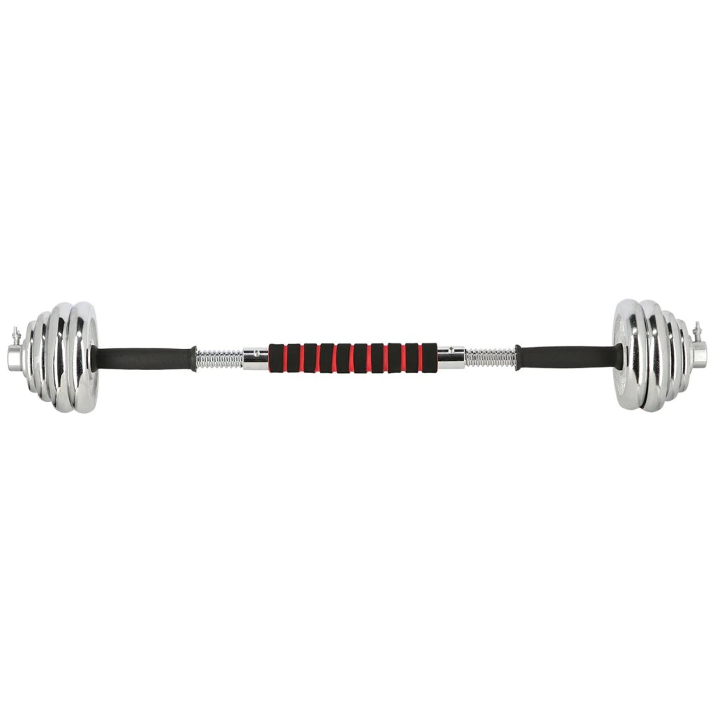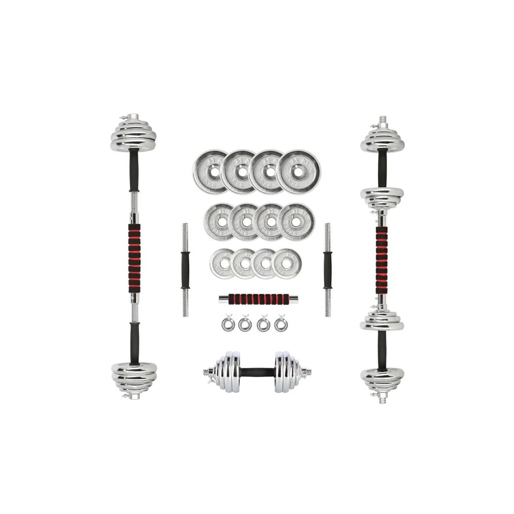 Speciální spojovací díl je po stranách opatřen závity, do nichž se jednoduše všroubují obě činky, toto řešení šetří náklady a místo ve Vaší domácí posilovně. Sada obsahuje 2 krátké, nakládací osy opatřené ergonomickým úchopem, spojovací díl, 4 zámky a 12 kotoučů.