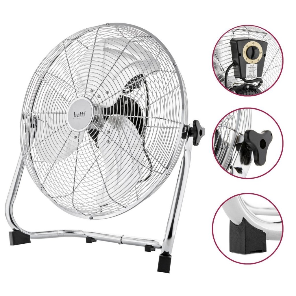Stolní/podlahový cirkulační větrák BOTTI 40CM 90W Robustní a výkonný stolní/podlahový ventilátor poskytne rychlou úlevu v horkých dnech. Má chromovaný stojan, díky kterému stabilně stojí a během práce se nepohybuje. Zajímavý a moderní vzhled dodá kouzlo každému interiéru. Vysoká kvalita zařízení vás v horkém počasí nezklame.