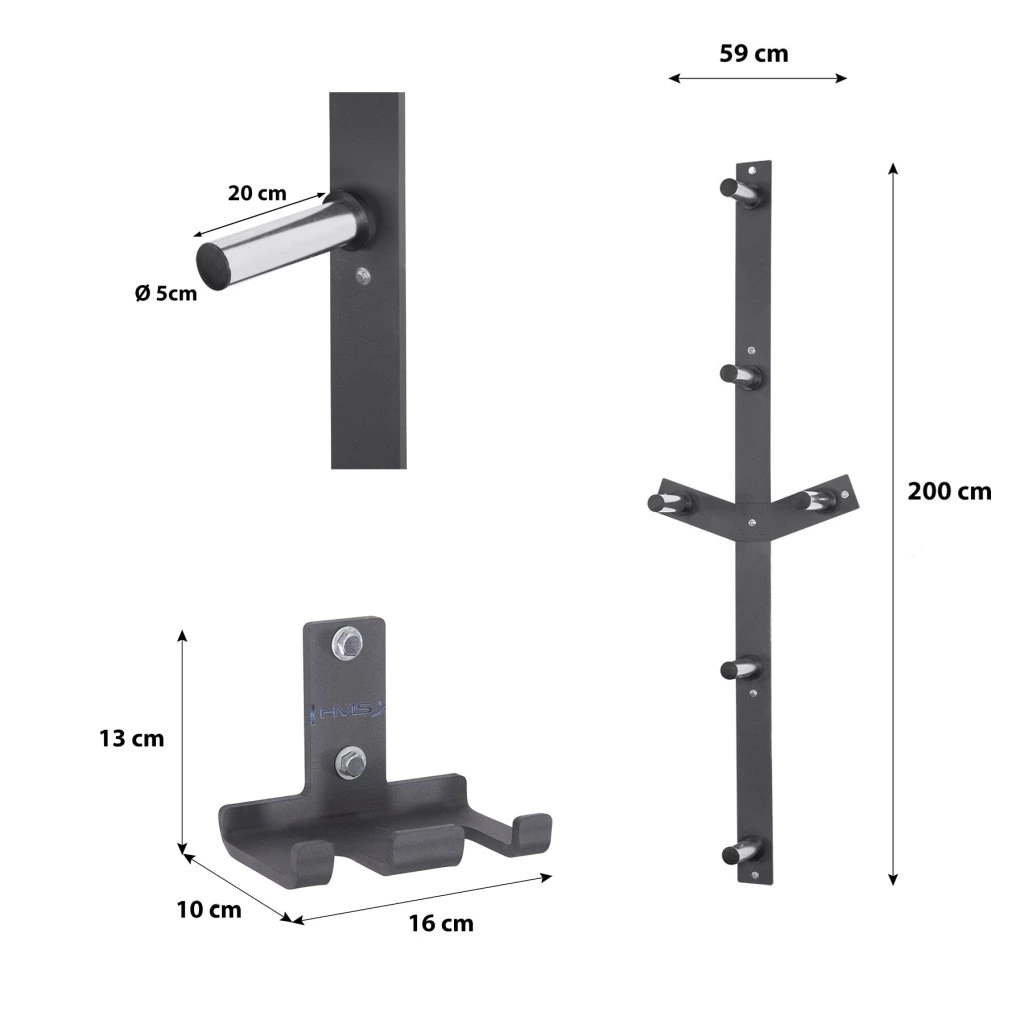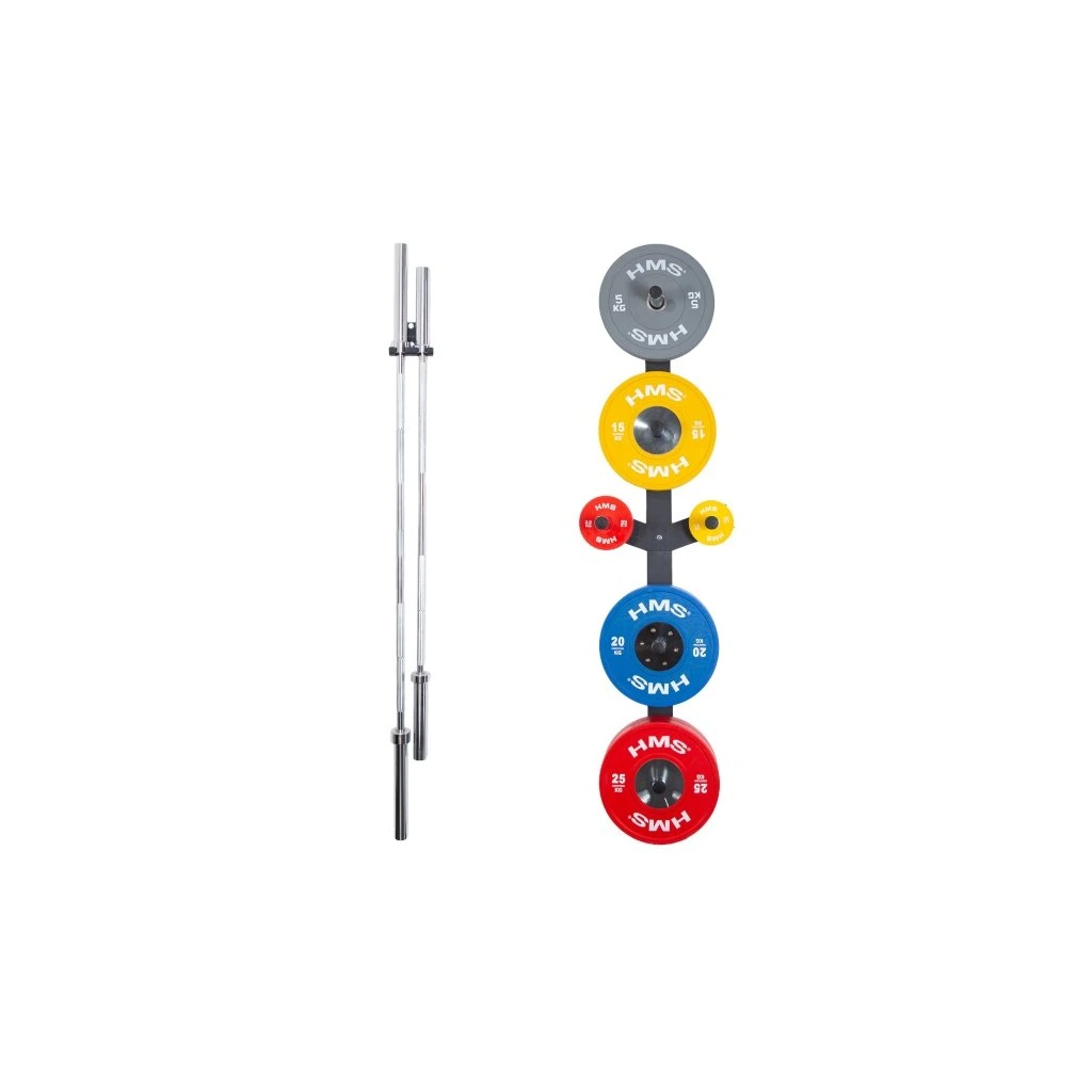 Pokud hledáte efektivní způsob uložení os a závaží, je pro vás tato sada od společnosti HMS ideálním řešením. Nástěnný stojan na osy a stojan na zátěž vám ušetří spoustu místa ve vašem tréninkovém prostoru.