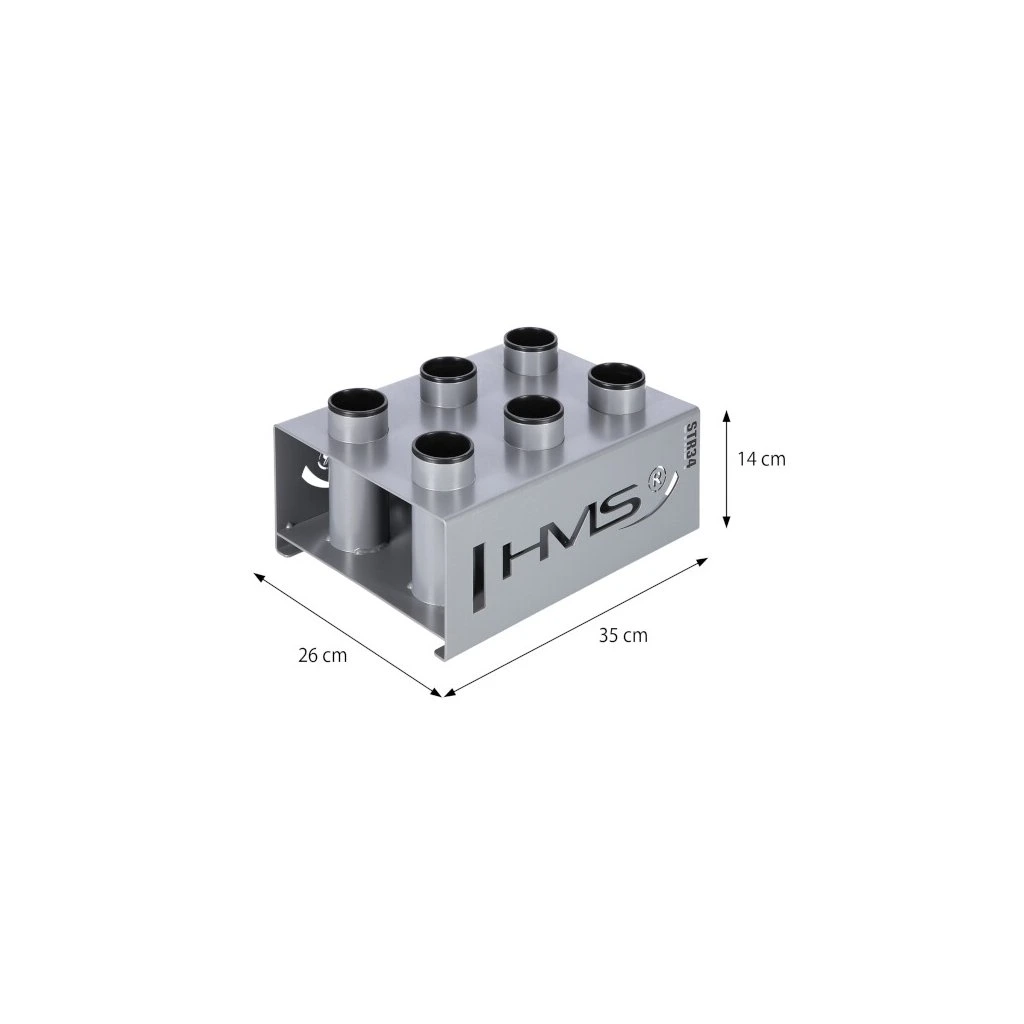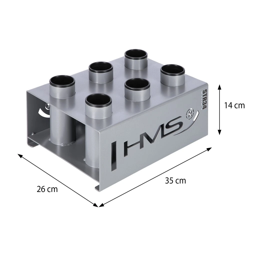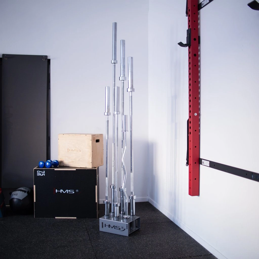 Stojan na olympijské osy STR34 od společnosti HMS vám ušetří spoustu místa ve vašem tréninkovém prostoru. Umožňuje postavit šest os vedle sebe ve svislé poloze.