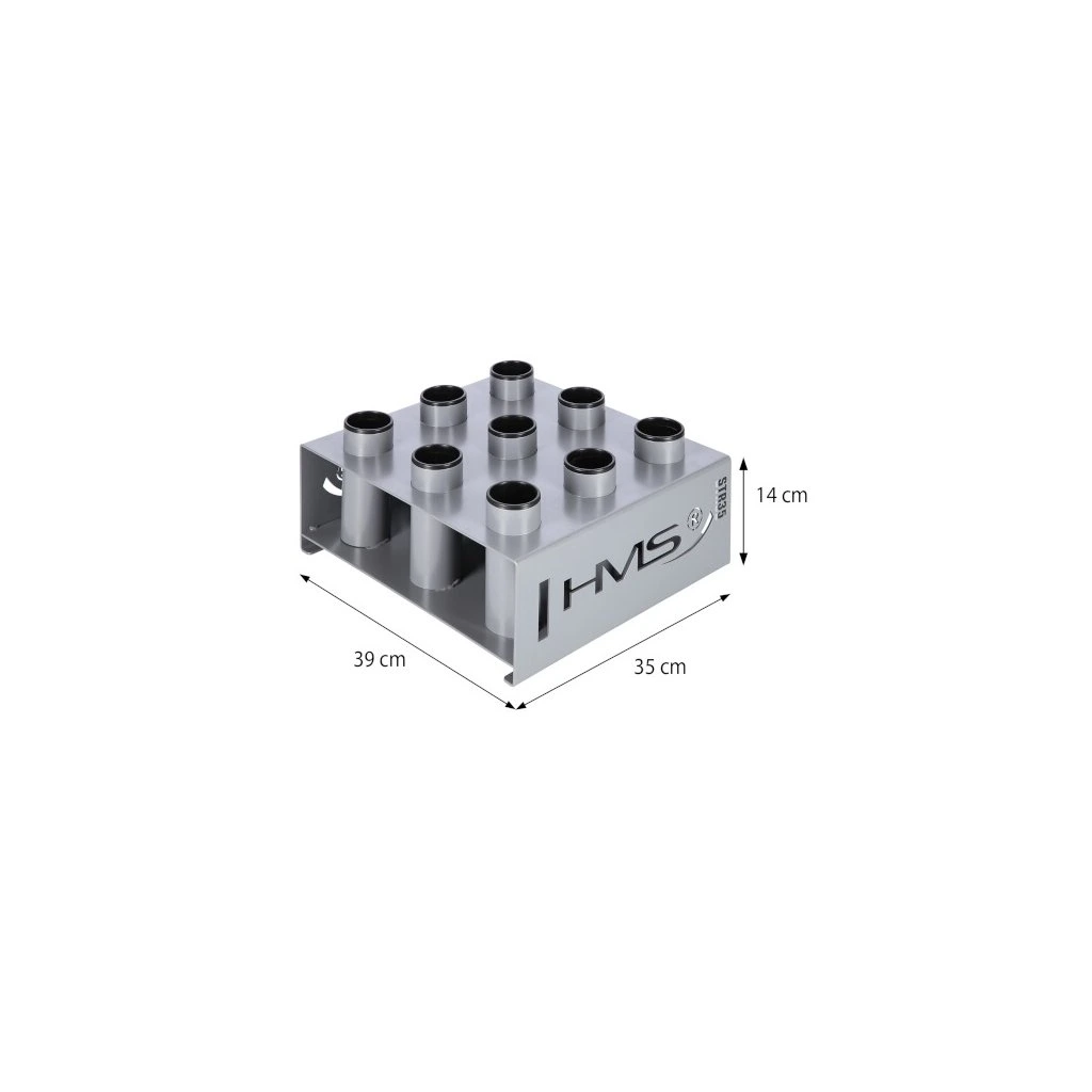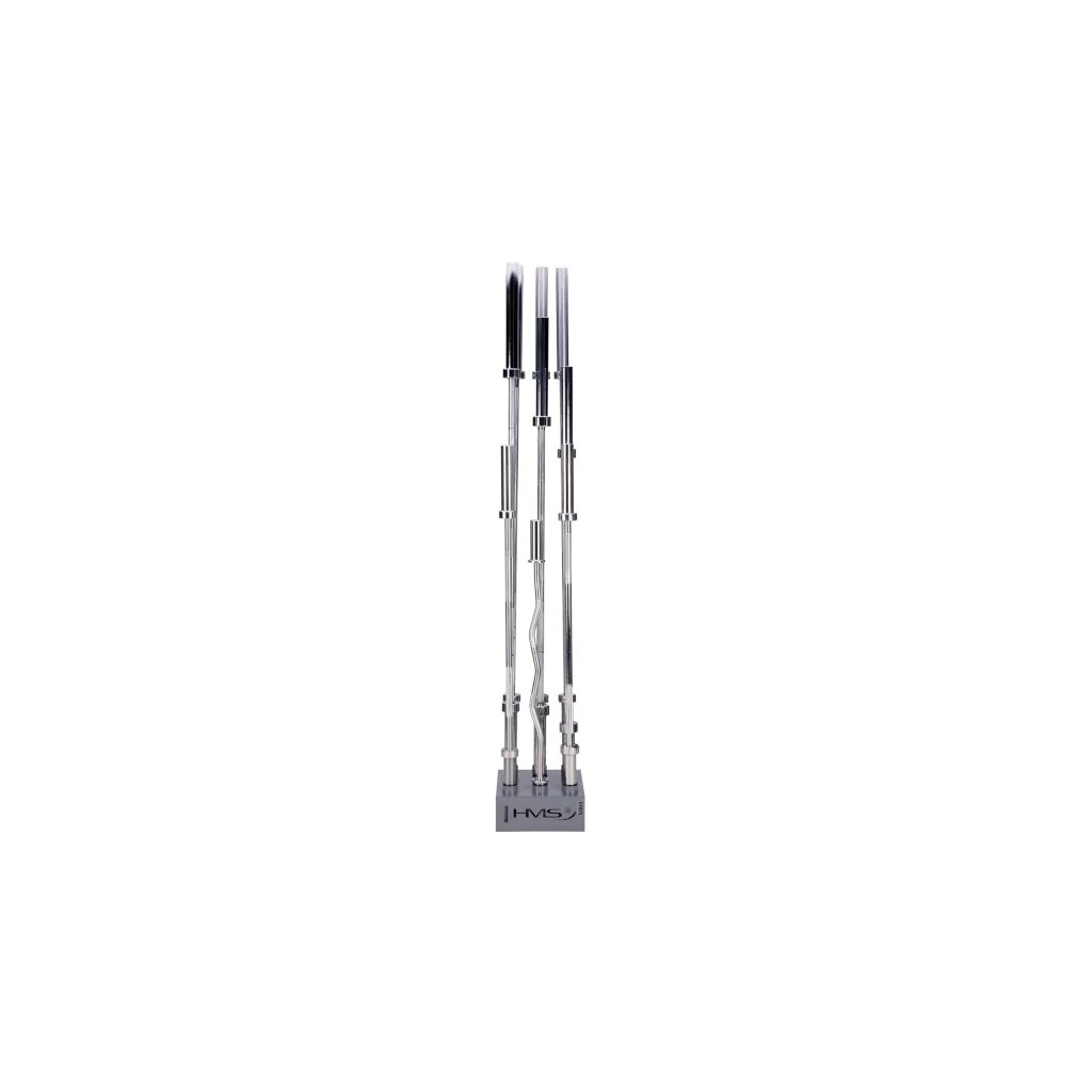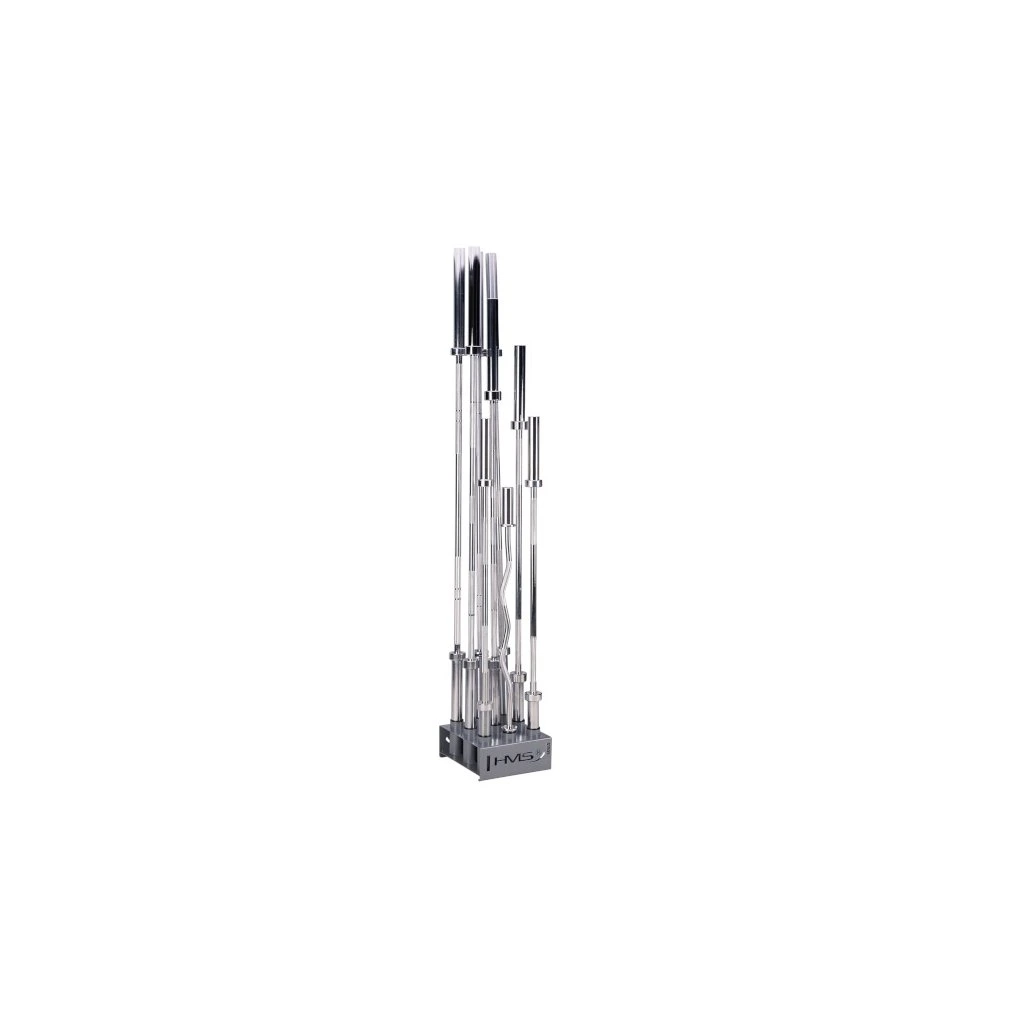 Stojan na olympijské osy STR35 od společnosti HMS vám ušetří spoustu místa ve vašem tréninkovém prostoru. Umožňuje postavit devět os vedle sebe ve svislé poloze.