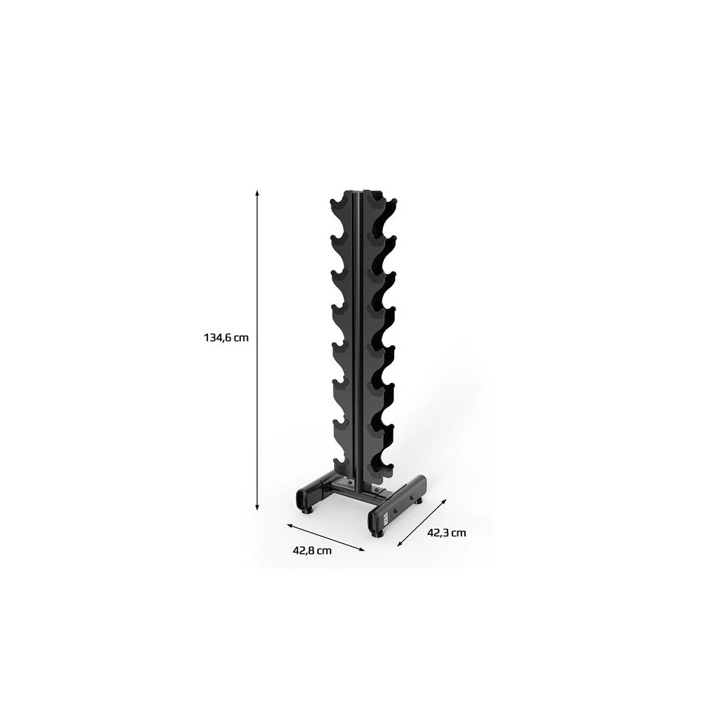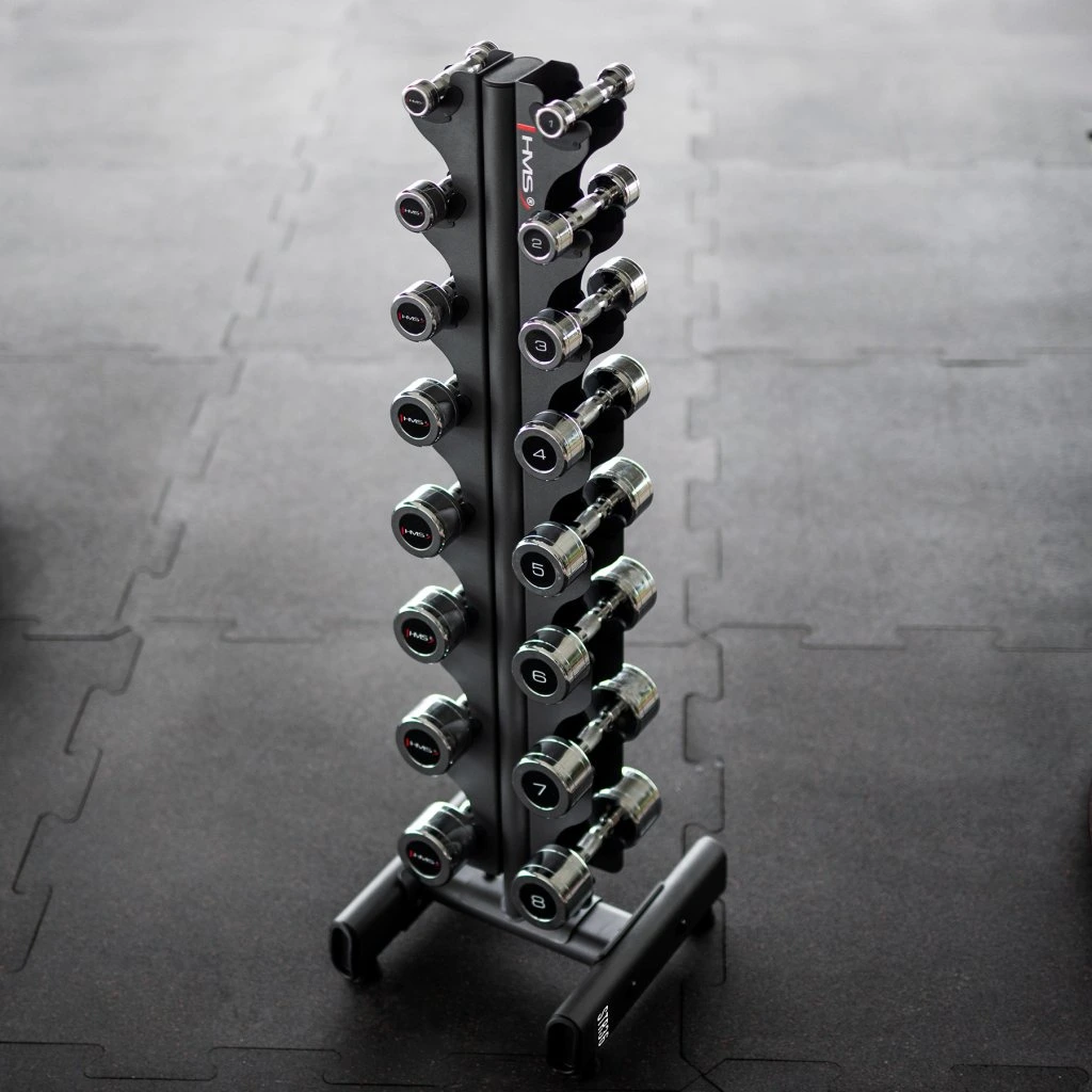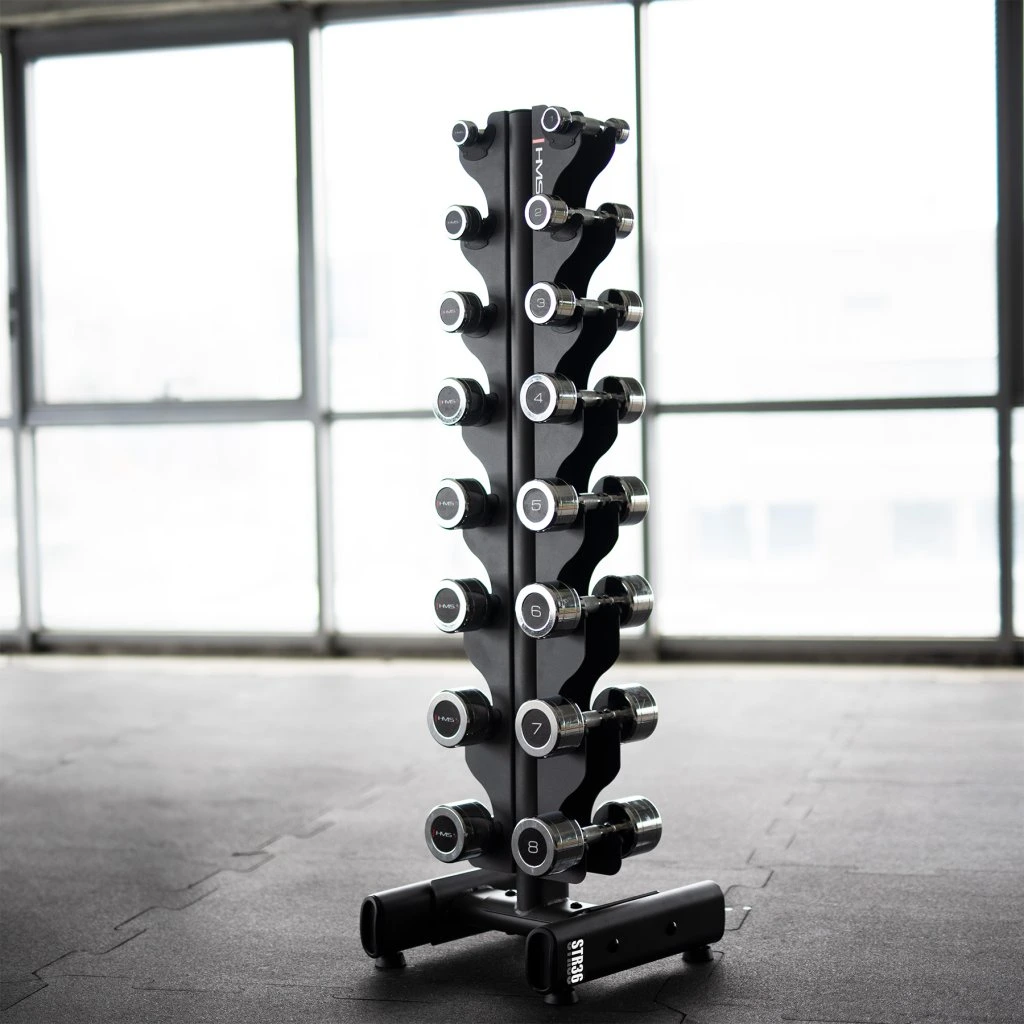 Stojan STR36 byl speciálně navržen tak, aby pojmul 8 párů činek s hmotností od 1 do 8 kg. Jeho konstrukce umožňuje snadný přístup k činkám, což výrazně zvyšuje pohodlí při cvičení. Je to ideální řešení pro začátečníky i pro ty, kteří potřebují více místa na své činky v omezeném prostoru.