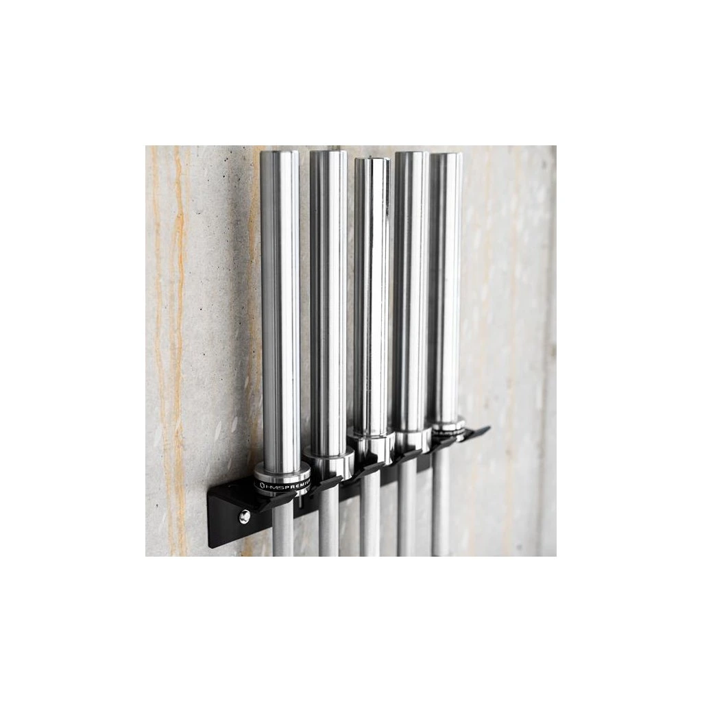 STR45 je praktický nástěnný držák, který umožňuje kompaktní a bezpečné uložení 5 os. Díky své konstrukci jsou osy umístěny vedle sebe, což pomáhá šetřit cenný prostor – což je obzvláště důležité v malých posilovnách a domácích tréninkových zónách.