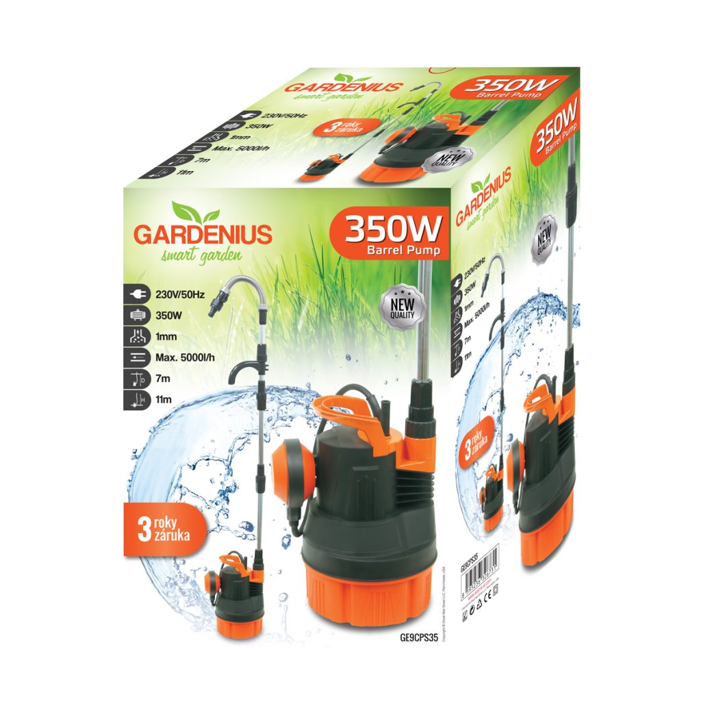 Sudové čerpadlo značky GARDENIUS má výkon 350 Wattů a přečerpáte s ním za hodinu až 5000 litrů vody. Jeho maximální dopravní výška je 11 metrů a hloubka ponoru činí 7 metrů. Navíc má ohebnou (nastavitelnou) koncovku a 10 metrový přívodní kabel.