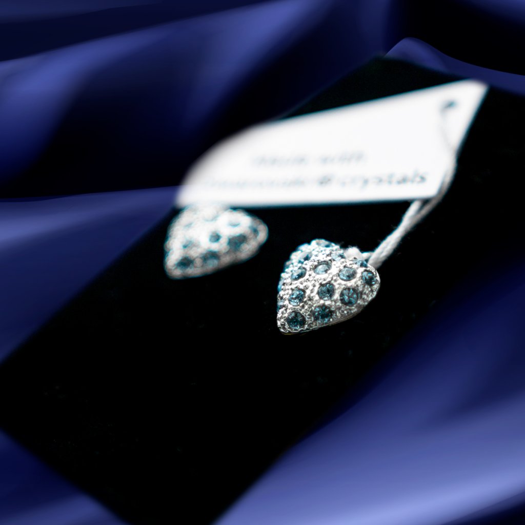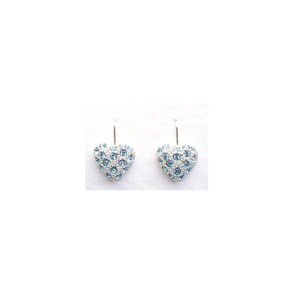 Velice elegantní visací náušnice ve tvaru srdce se zapínáním na klapku od světoznámé firmy Swarovski. Skvěle barevně sladěné náušnice stříbrné barvy s modrými křišťálovými kamínky.
