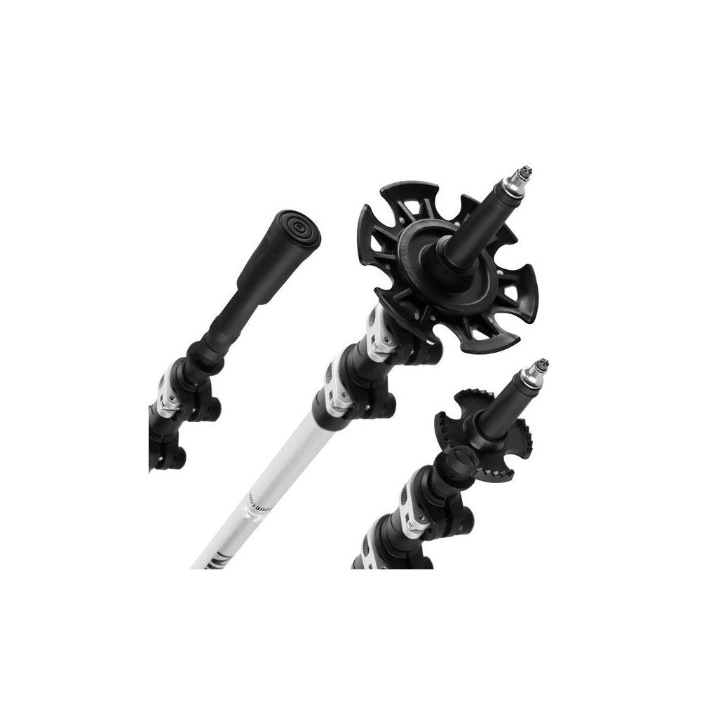- Upínací systém: zajišťuje pohodlné a stabilní nastavení délky tyčí.