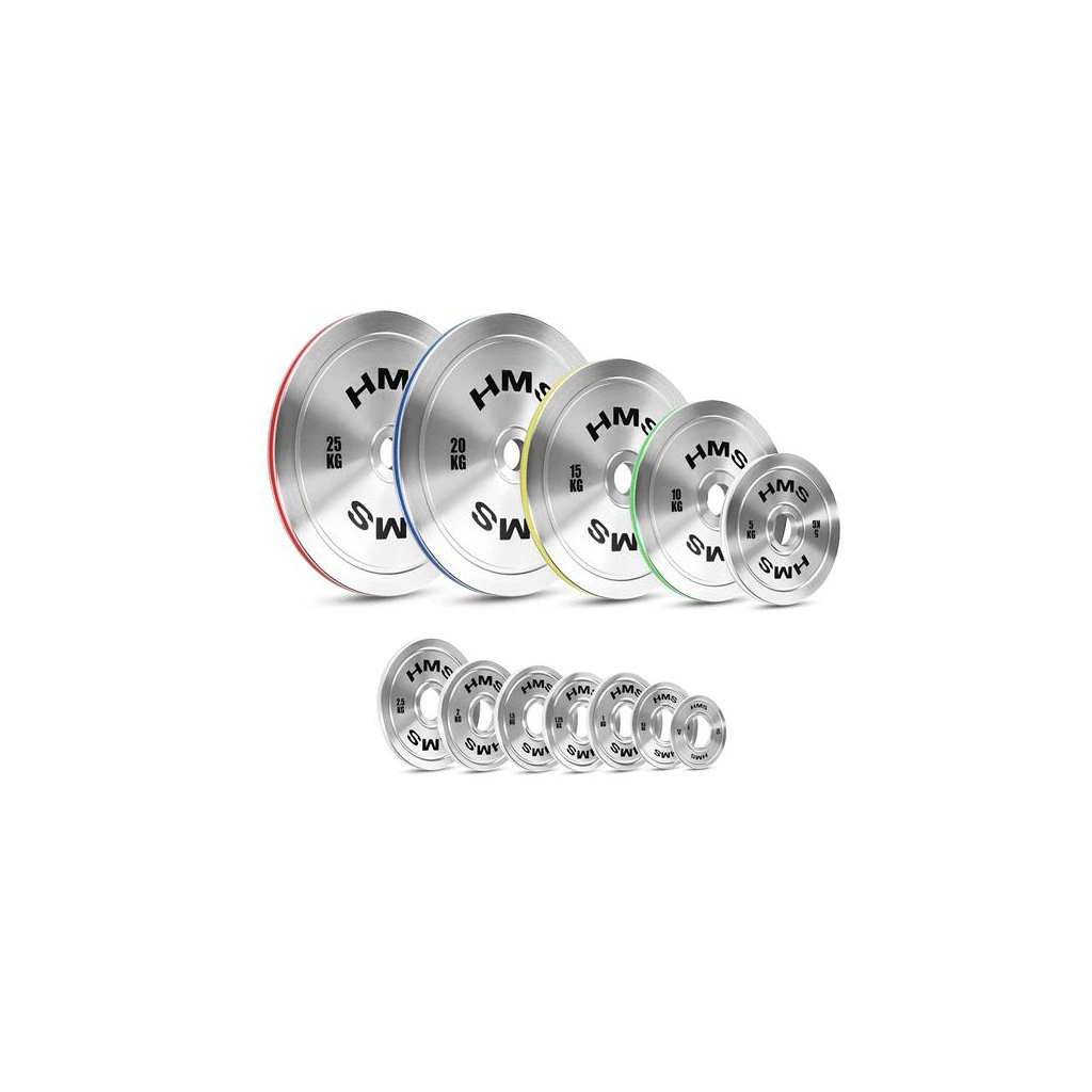 Kotouče ve variantách 5; 10; 15; 20 a 25 kilogramů mají na hraně barevný pruh odpovídající mezinárodním olympijským normám. Díky tomu lze rychle rozpoznat hmotnost závaží, což usnadňuje organizaci tréninku a dynamické změny váhy během série cviků.