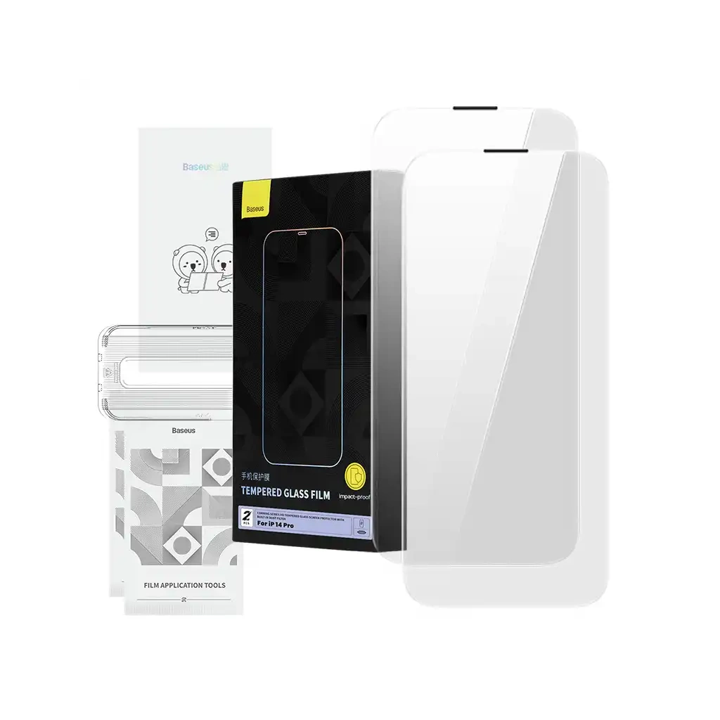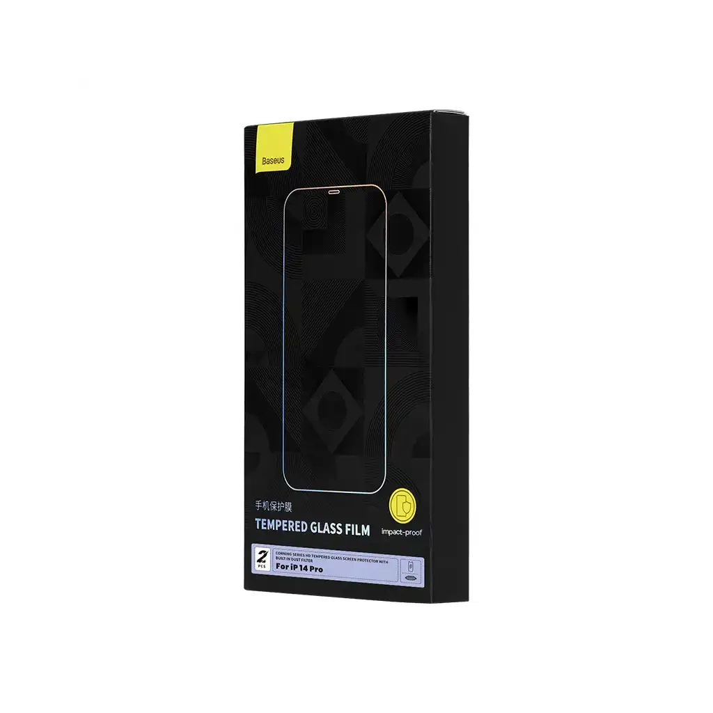 Nezbytné příslušenství pro váš telefon! Tvrzené sklo, které jsme navrhli speciálně pro váš iPhone, pochází od mezinárodní technologické společnosti Corning, která vyrábí skleněné komponenty pro Apple. Chraňte svůj telefon tím nejlepším! Vysoký stupeň tvrdosti chrání displej před pády a nárazy a zabraňuje poškrábání. Plně pokrývá obrazovku modelů iPhone řady 14 Pro a chrání také reproduktor před prachem a dalšími nečistotami. Sklo je vysoce průhledné, takže nedochází ke zkreslení barev, a jeho oleofobní vrstva eliminuje mastné skvrny a otisky prstů. Vsaďte na kvalitu se společností Baseus!