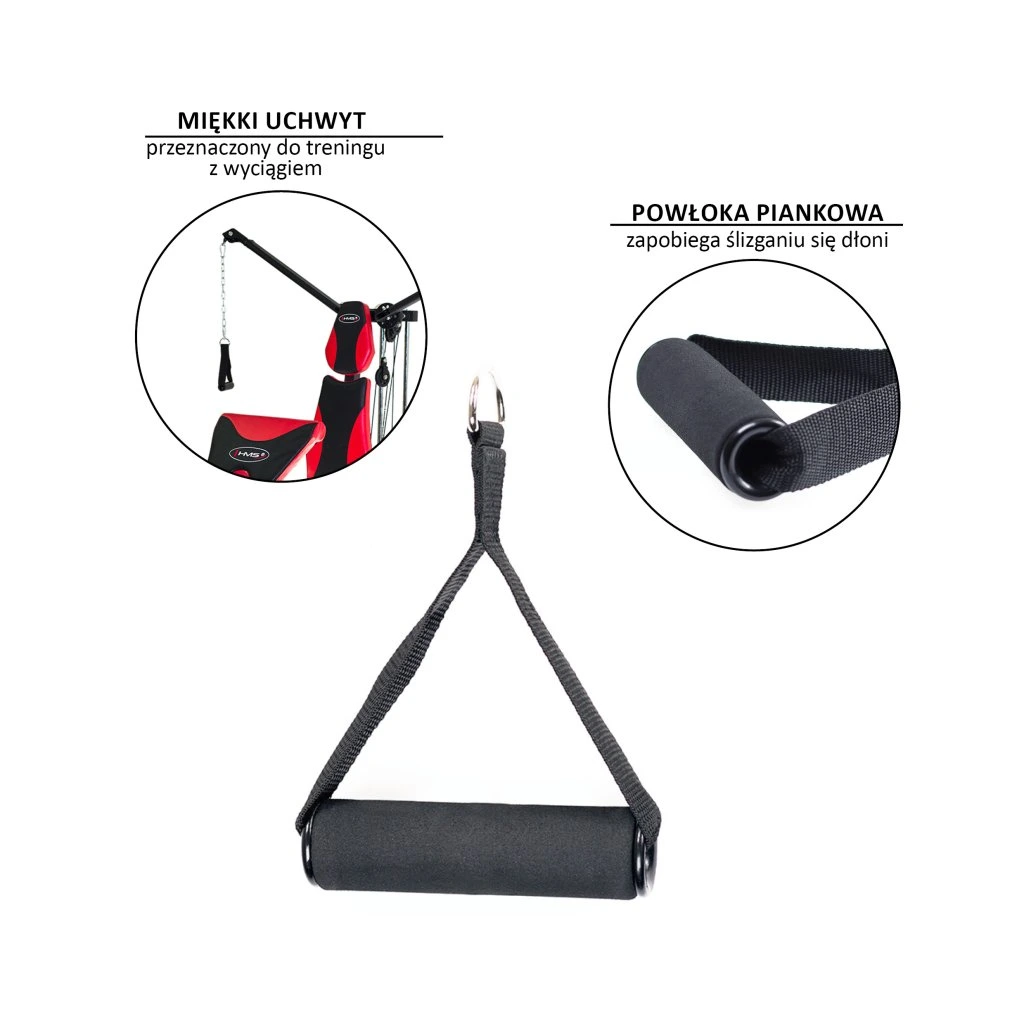 Úchyt na gumový expandér HMS je doplňkem ke kladkovým strojům. Cvičení s tímto expandérem je mnohem konfortnější, díky pohodlným úchopům.