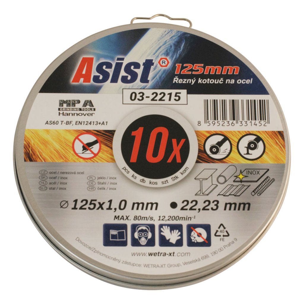 Řezné kotouče značky ASIST o průměru 125 mm a tloušťce 1 mm jsou vhodné na řezání do oceli.
