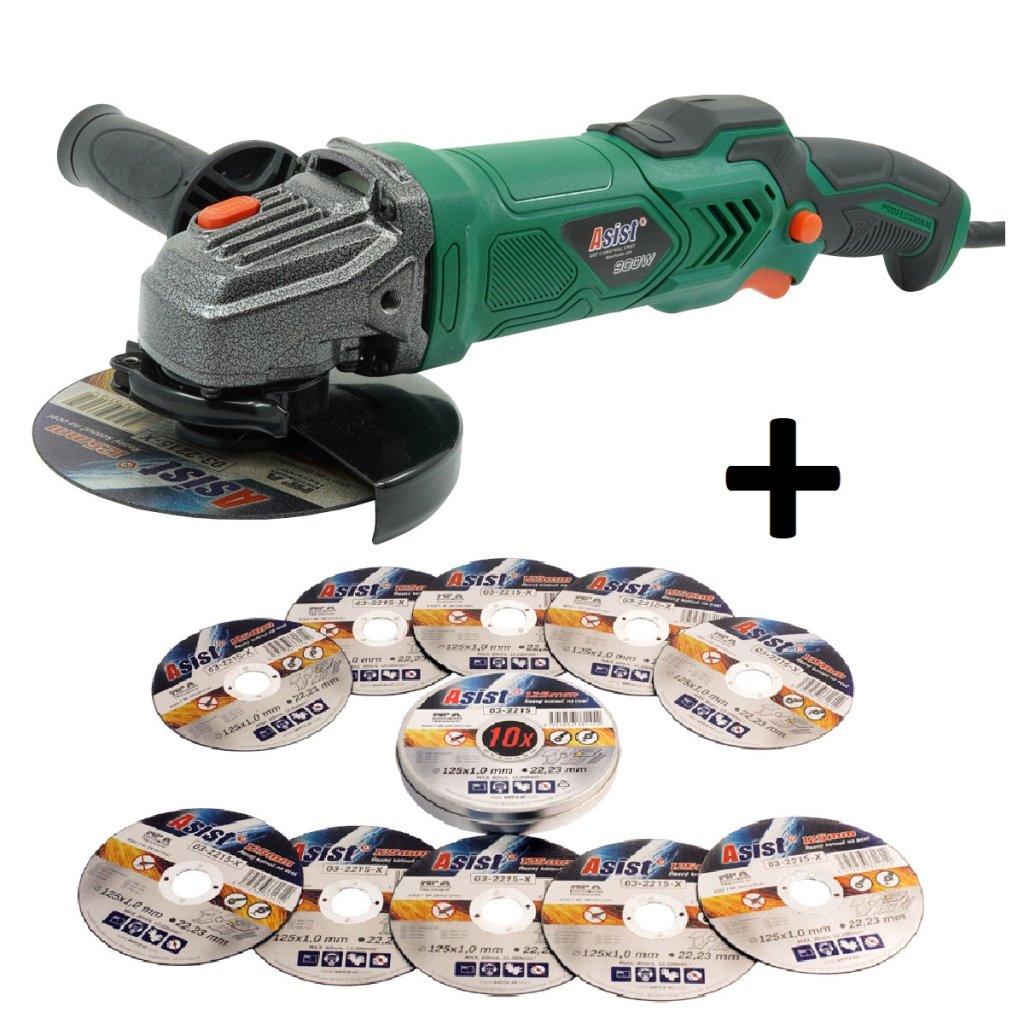 Úhlová bruska 900W, 125mm + ZDARMA sada 10ks kotoučů v plechovém boxu ASIST