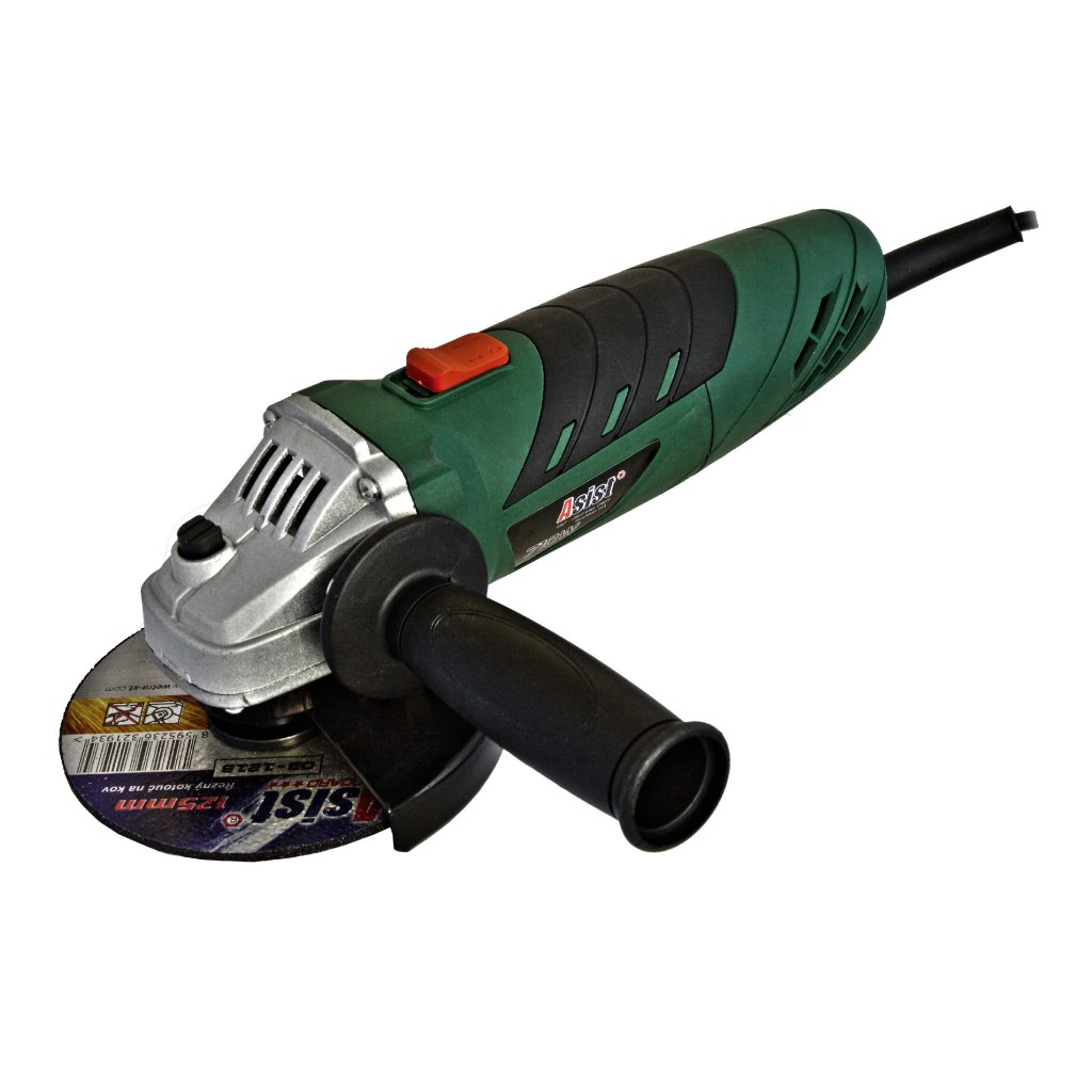 Úhlová bruska značky ASIST o příkonu 710 Wattů je vhodná pro domácí a hobby použití. Hodí se na hrubé broušení, tak i na řezání kovů, kamene, zdiva a dalších materiálů. Při volnoběhu dosáhne až 11000 otáček za minutu. Je určena na kotouče o průměru 125 milimetrů.
