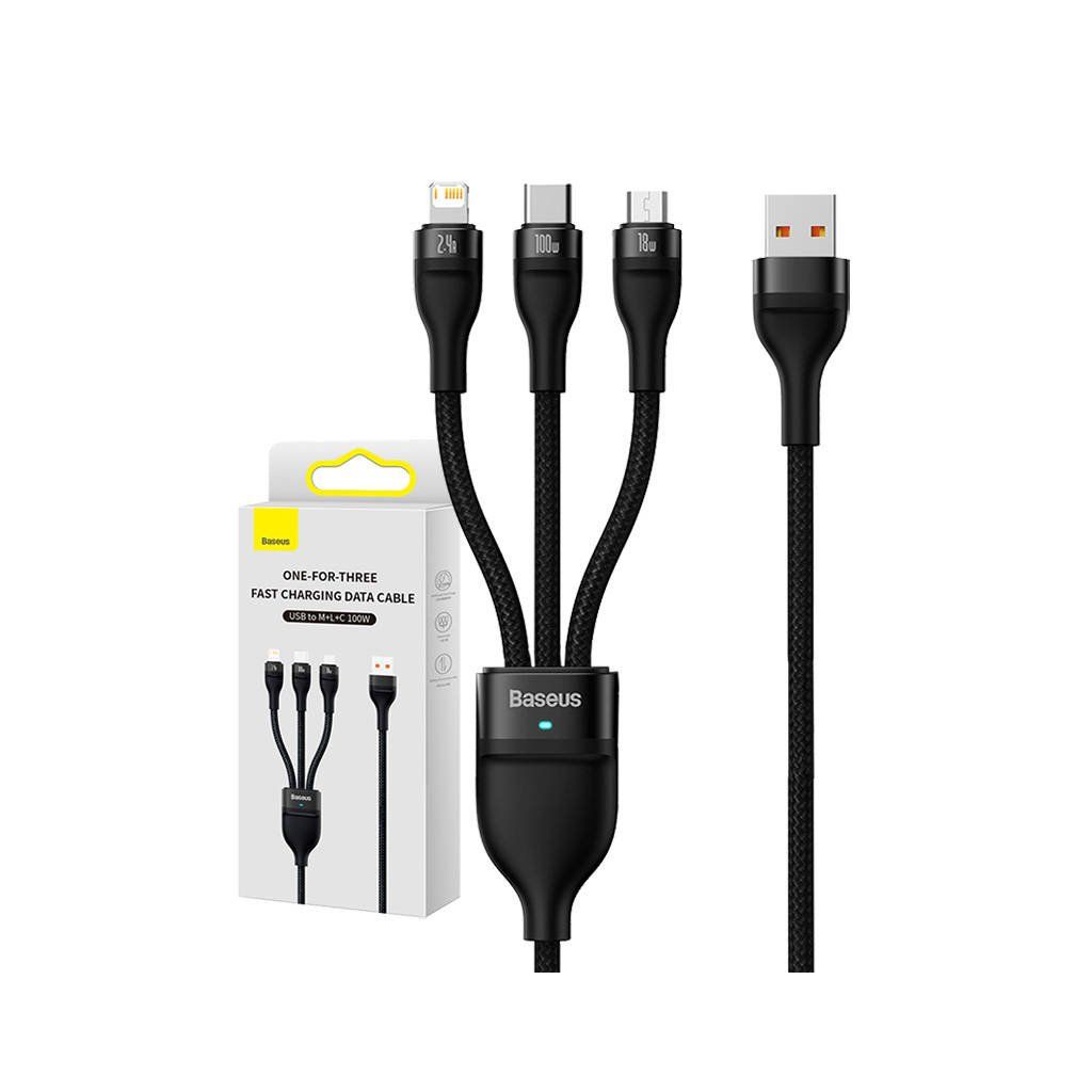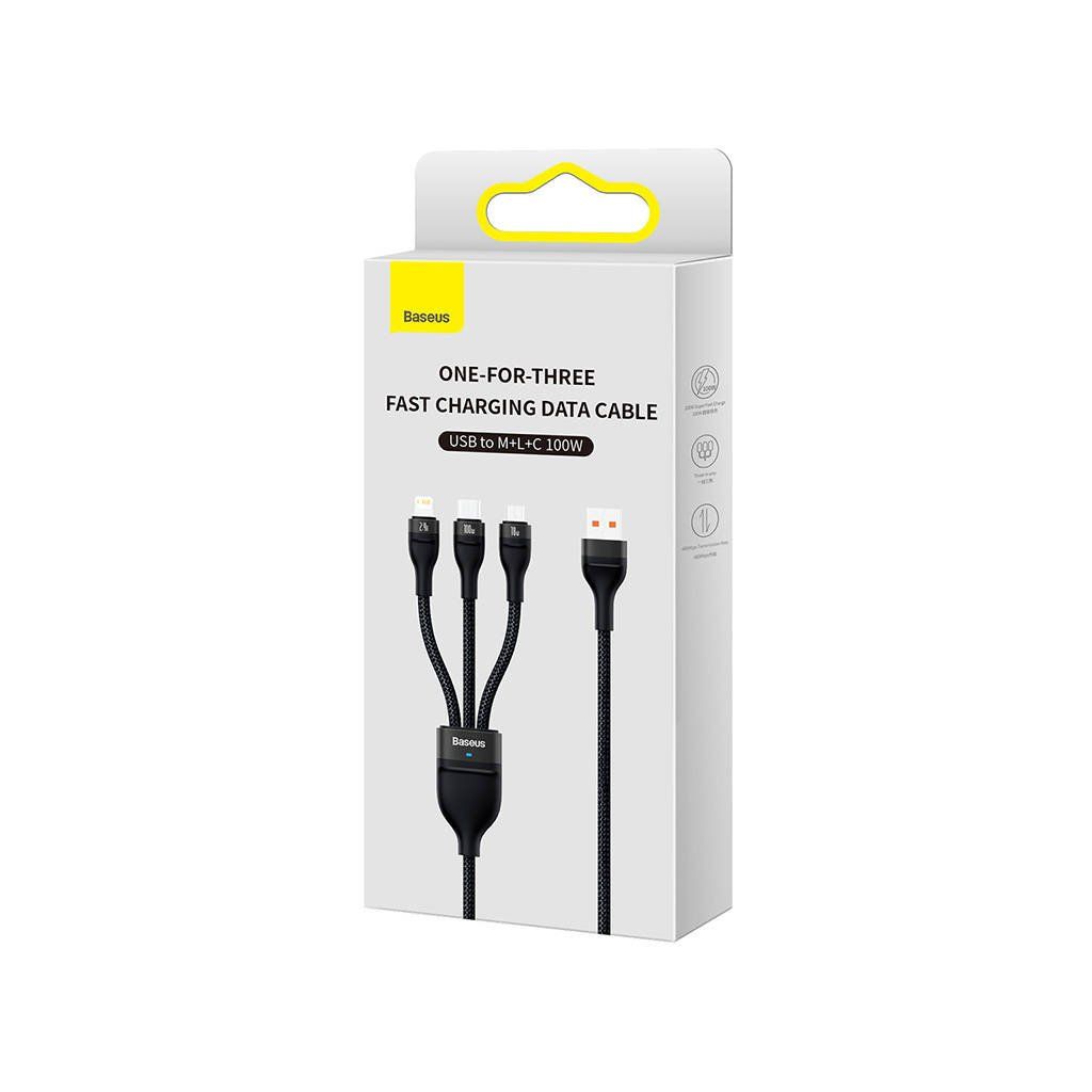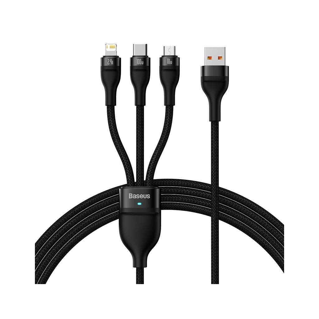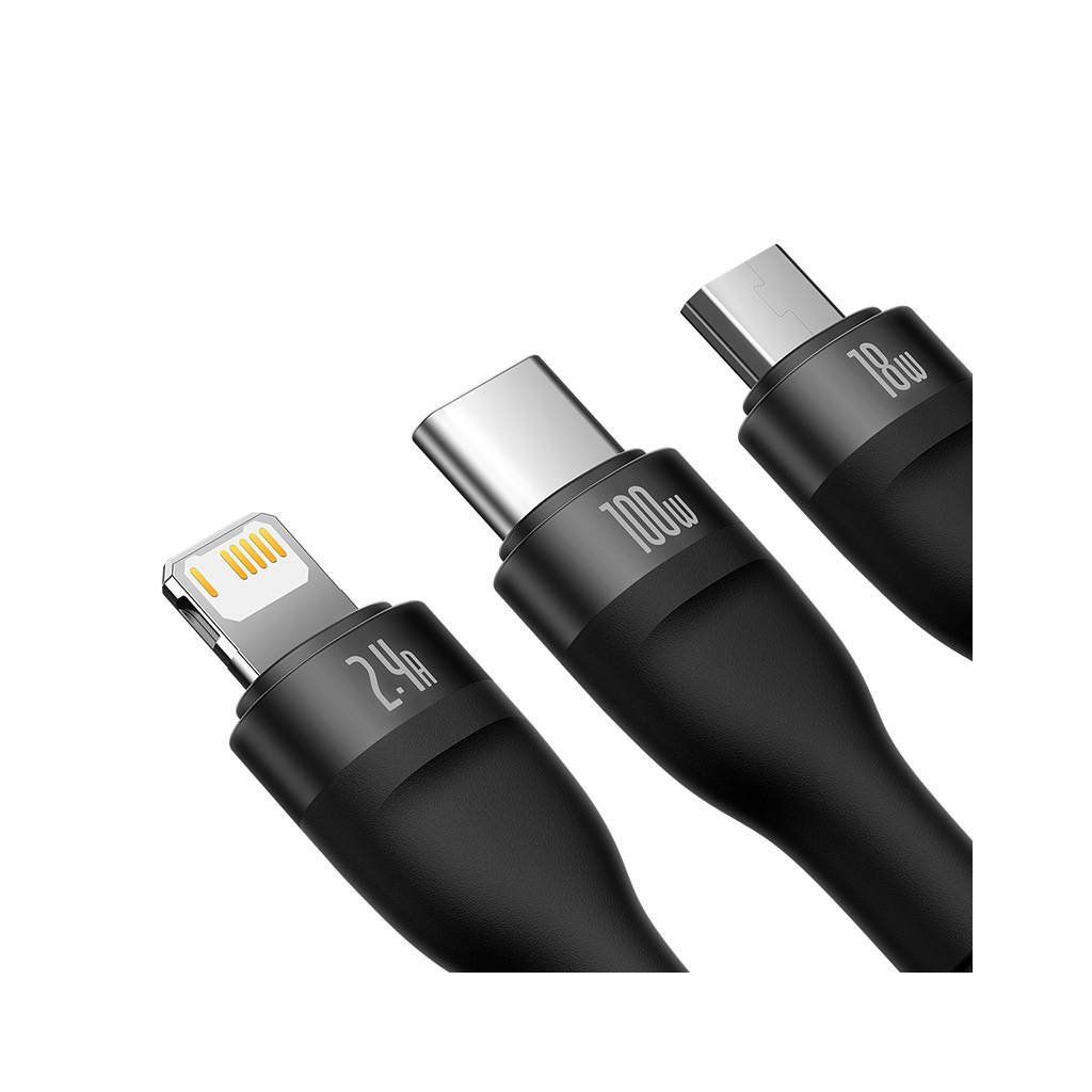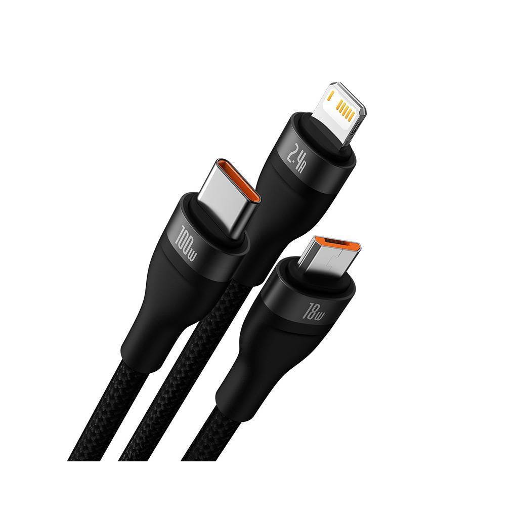 USB kabel 3v1 Baseus Flash Series, USB-C + micro USB + Lightning, 100W, 1,2 m (černý)