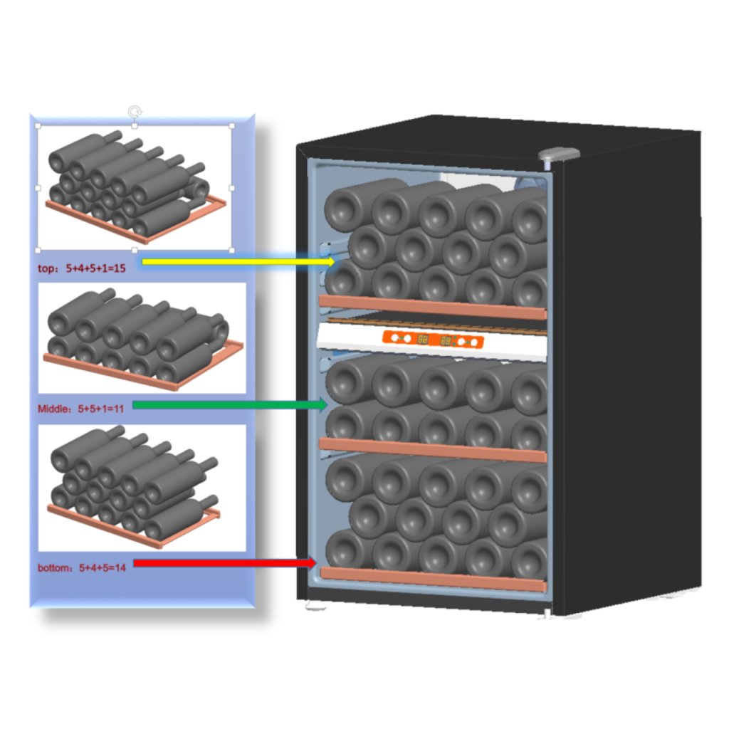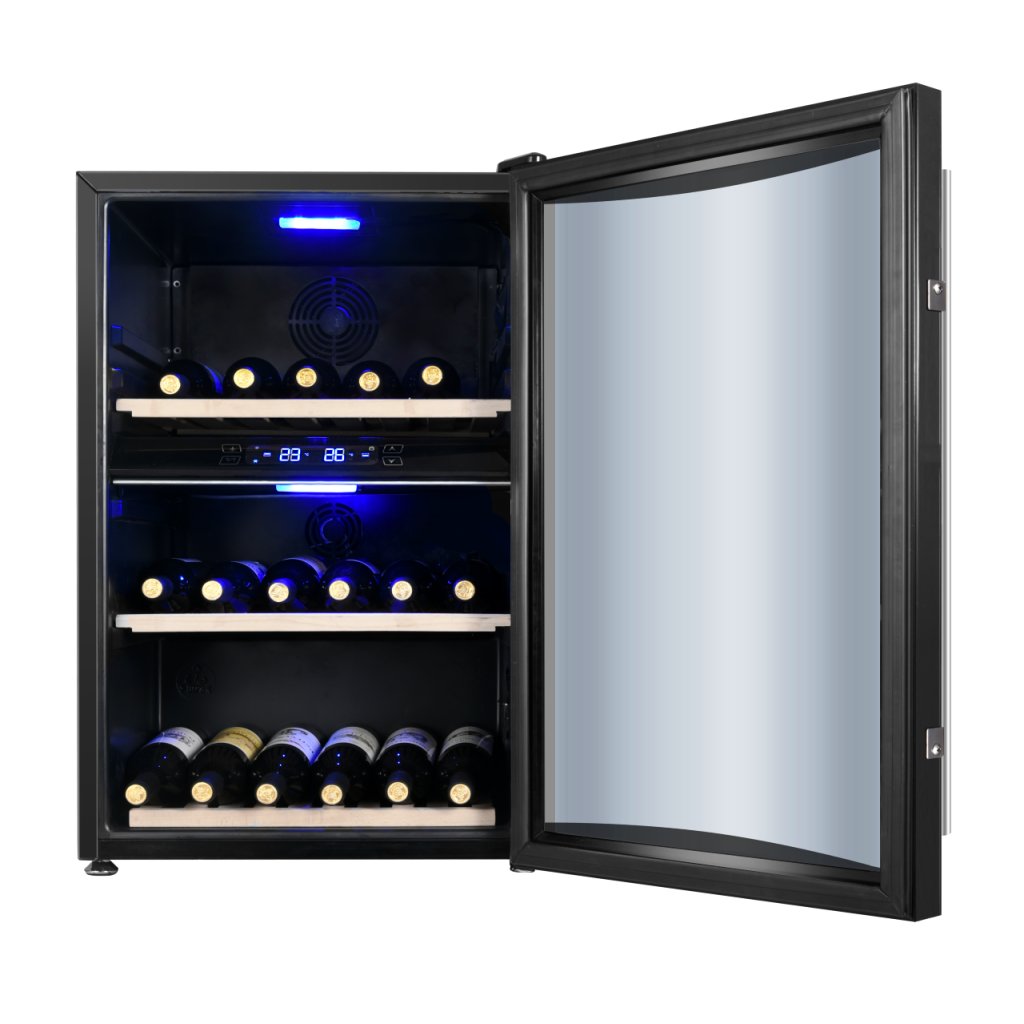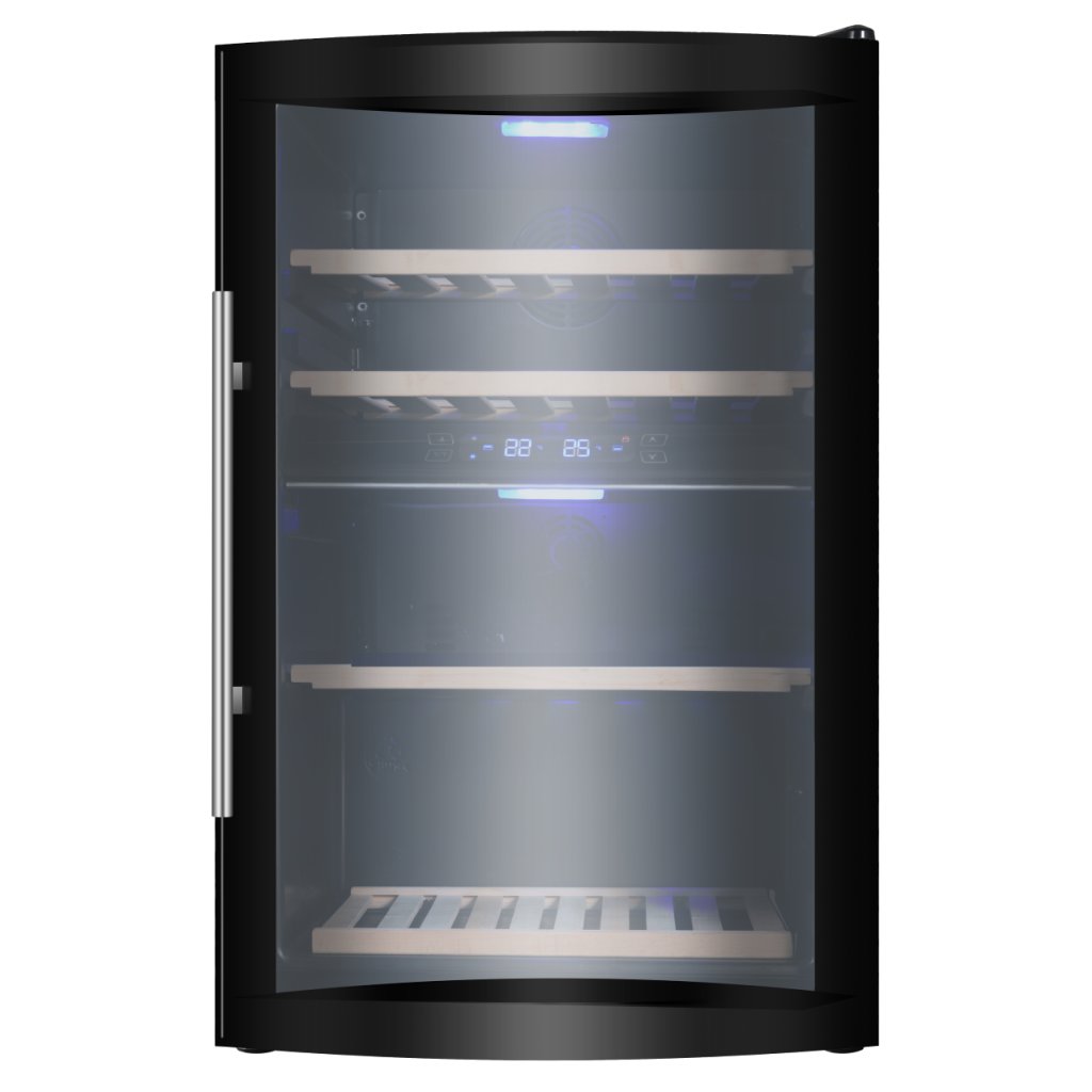 Kompresorová duální vinotéka pro 42 lahví.dvě nezávislé duální teplotní zóny pro 42 láhvíHorní zóna pro bílá vína, kapacita 16 lahví, od 5°C do 12°C