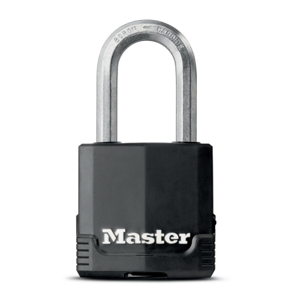 Visací zámek značky MASTER LOCK řady Excell má 48 milimetrů široké tělo z vrstvené oceli s potahem z termoplastu. Jeho bor-karbidový třmen o průměru 8 milimetrů je dlouhý 38 milimetrů. Byl vyroben se stupněm zabezpečení 8. Hodí se pro zabezpečení garáže, bran, branek nebo venkovních budov.